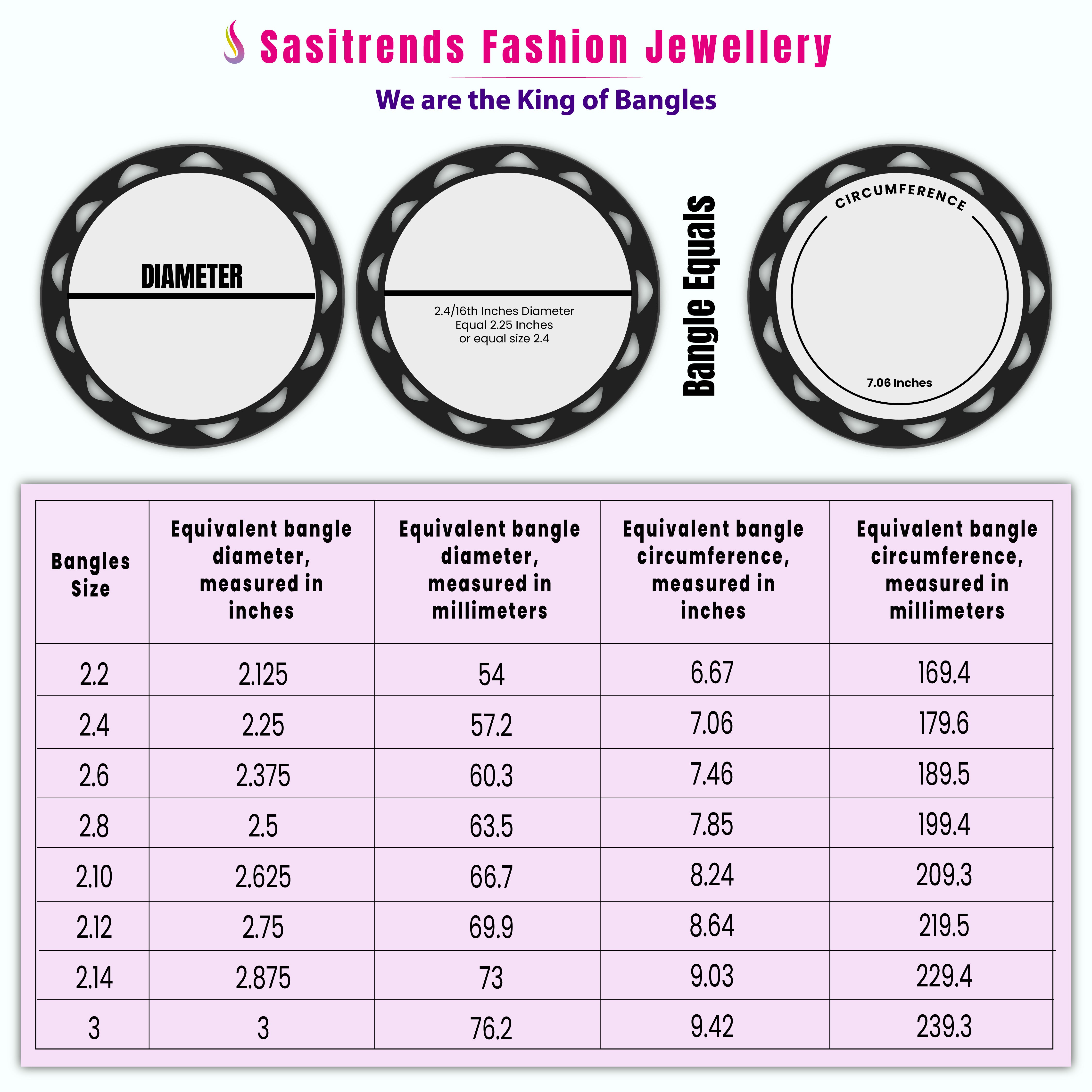Matte Gold Plated Bangles Measurement Image - Sasitrends