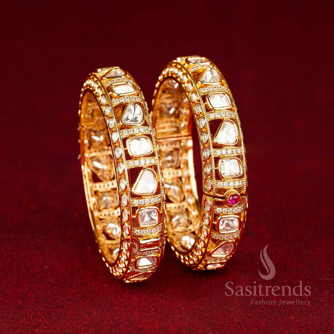 Sasitrends | Luxurious High Gold Plated Kundan Bangles with Premium American Diamond Kundan Stones