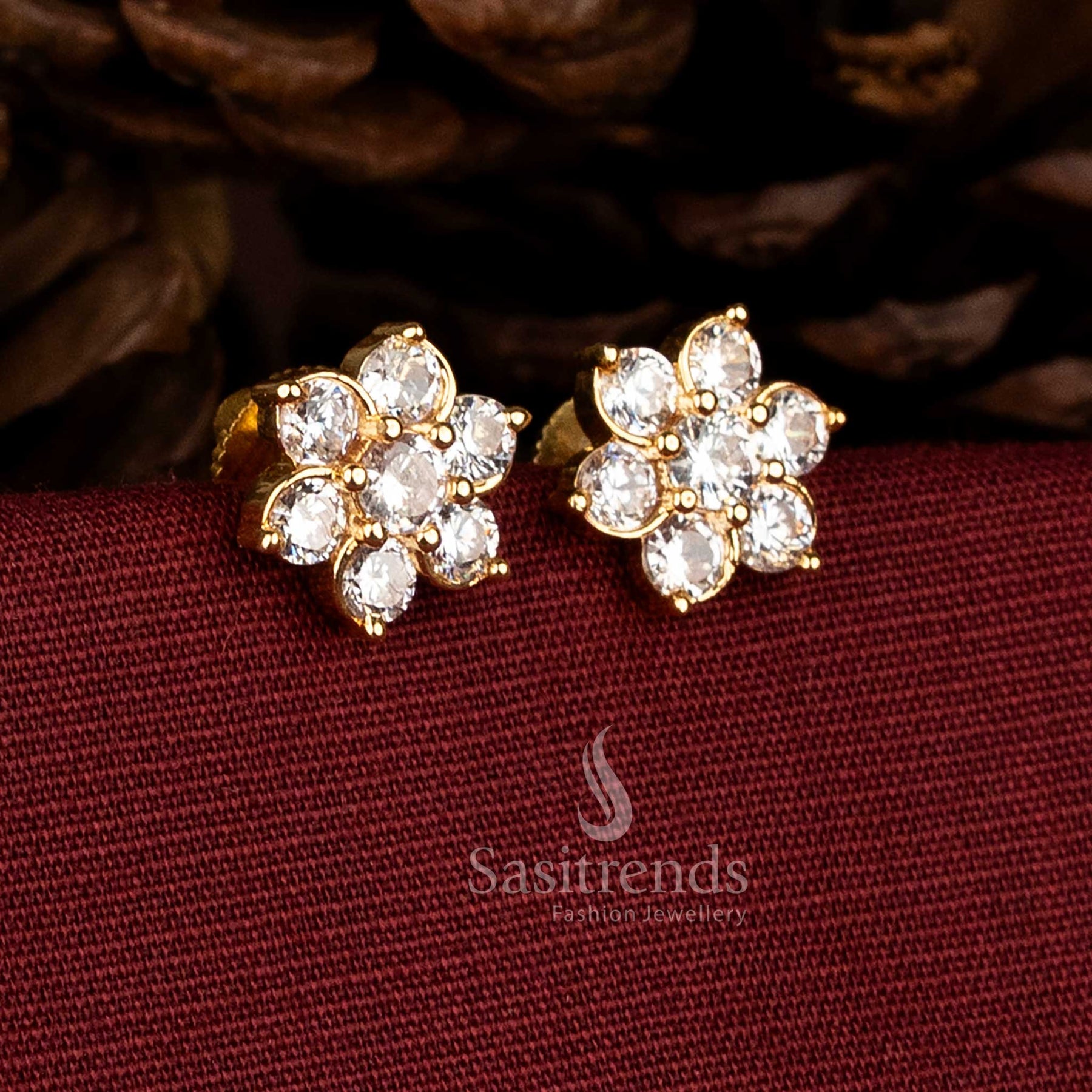 Sparkling Party Wear Floral American Diamond Stud Earrings – Real Diamond Look