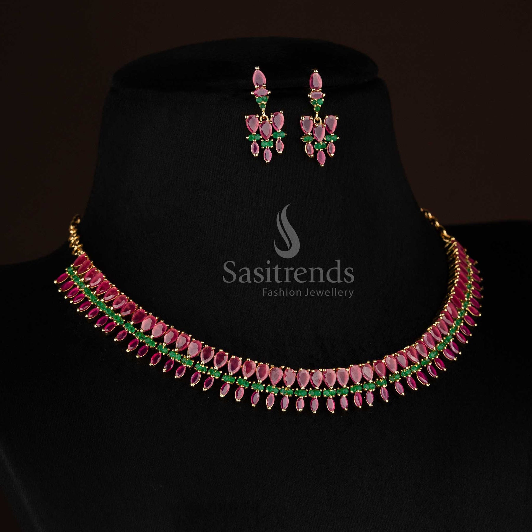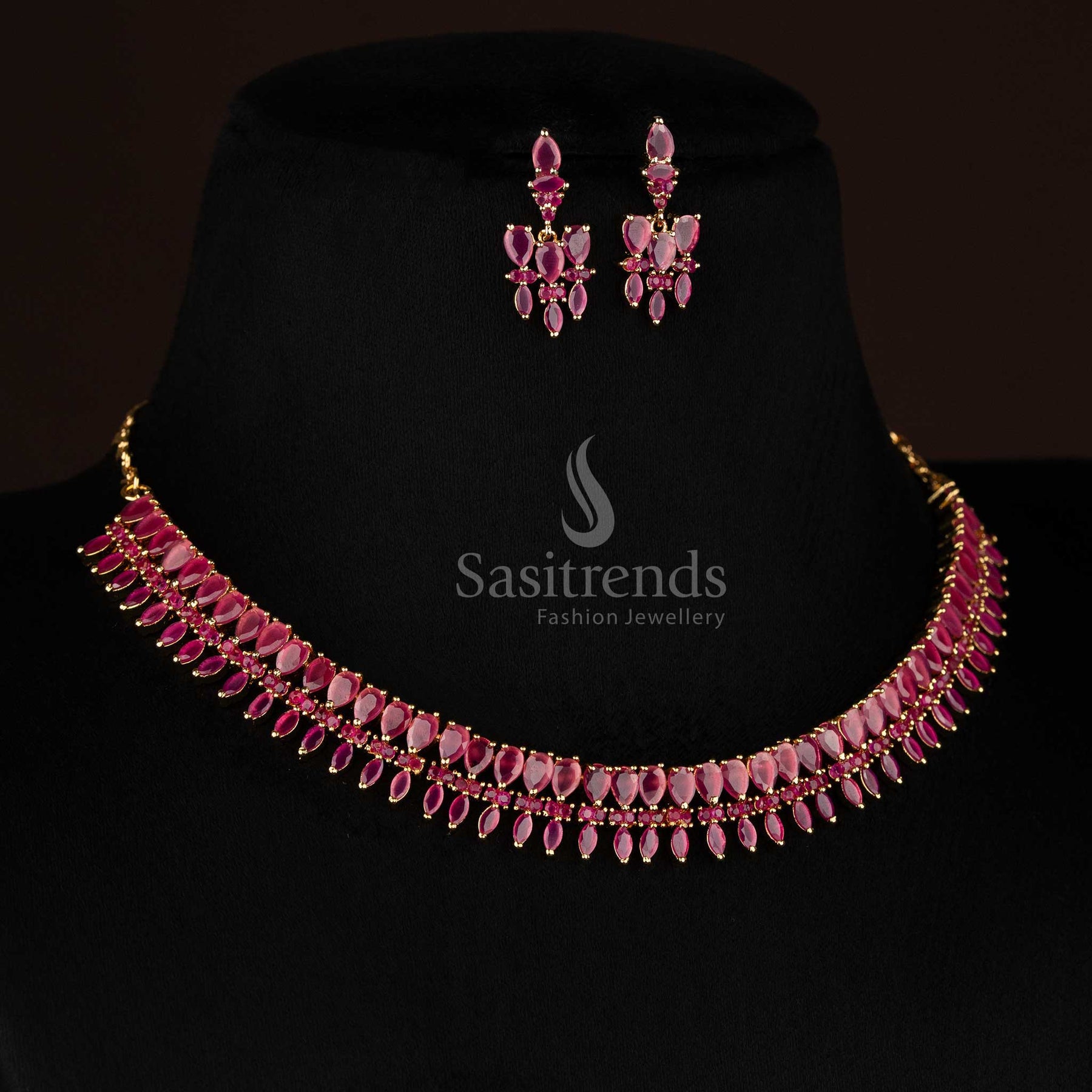 Brand: Contemporary-elegance defines Sasitrends collections. The brand curates jewellery designed for parties and special occasions, featuring precise American Diamond settings and smooth micro gold plated finishes. Each piece reflects modern styling, attention to detail, and a refined visual balance suited for celebration wear and evening looks.