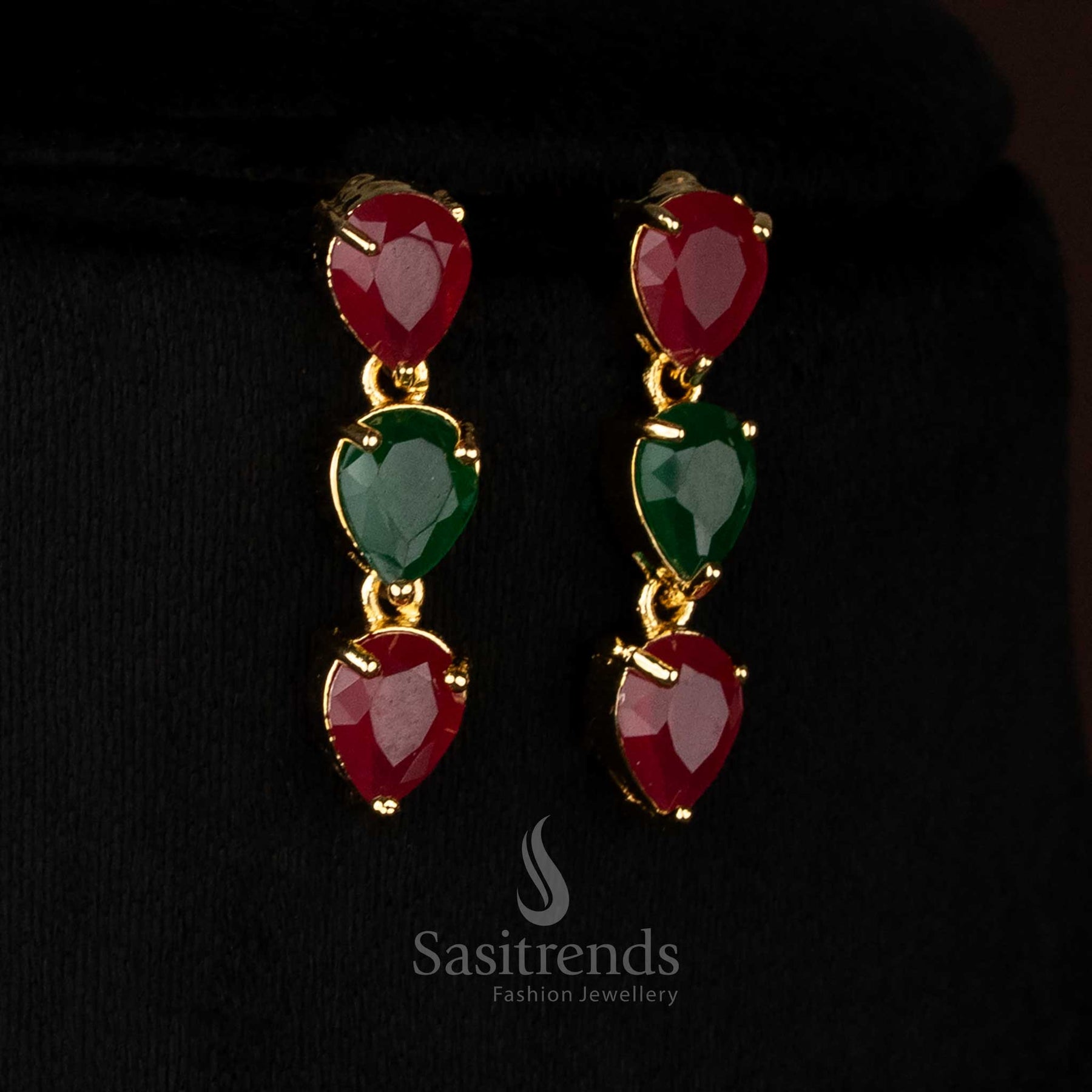 Brand: Sasitrends creates contemporary jewellery featuring American Diamond sparkle, pearl accents, and 24K micro gold plated finishes. Designed for festive events, cocktail dinners, and elegant fusion wear, each piece reflects polished craftsmanship, modern silhouettes, and a realistic gold-like glow for a stylish, sophisticated look.