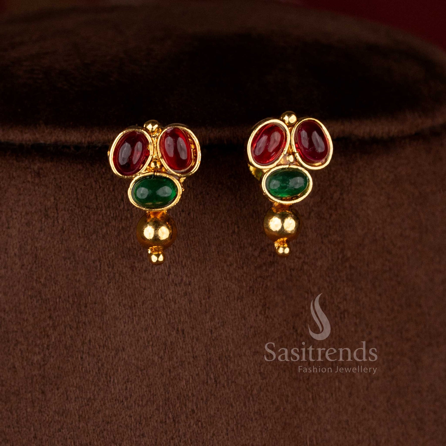 Delicate classic antique red-green Mullapoo jasmine bud golden ball earrings for festive styling – Sasitrends