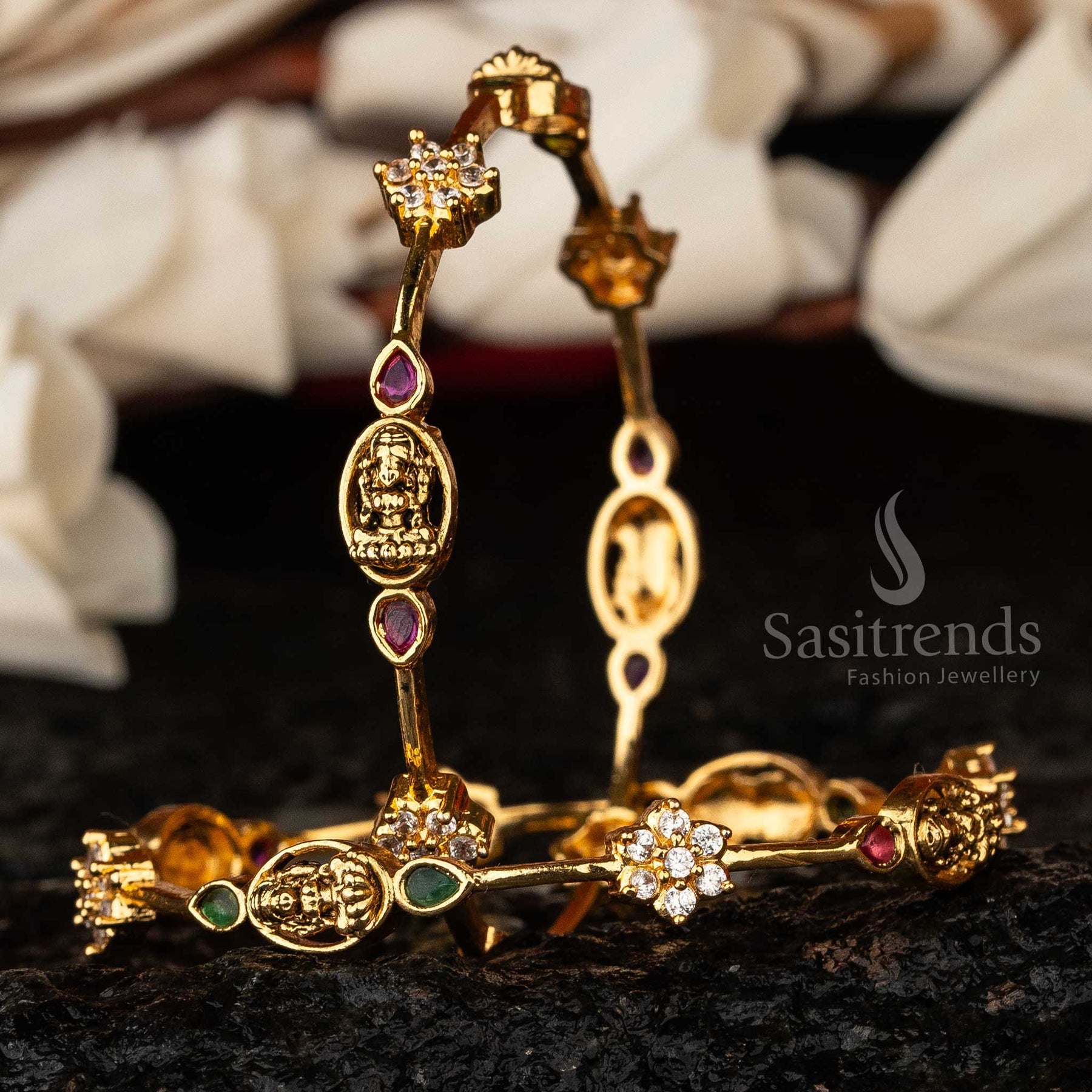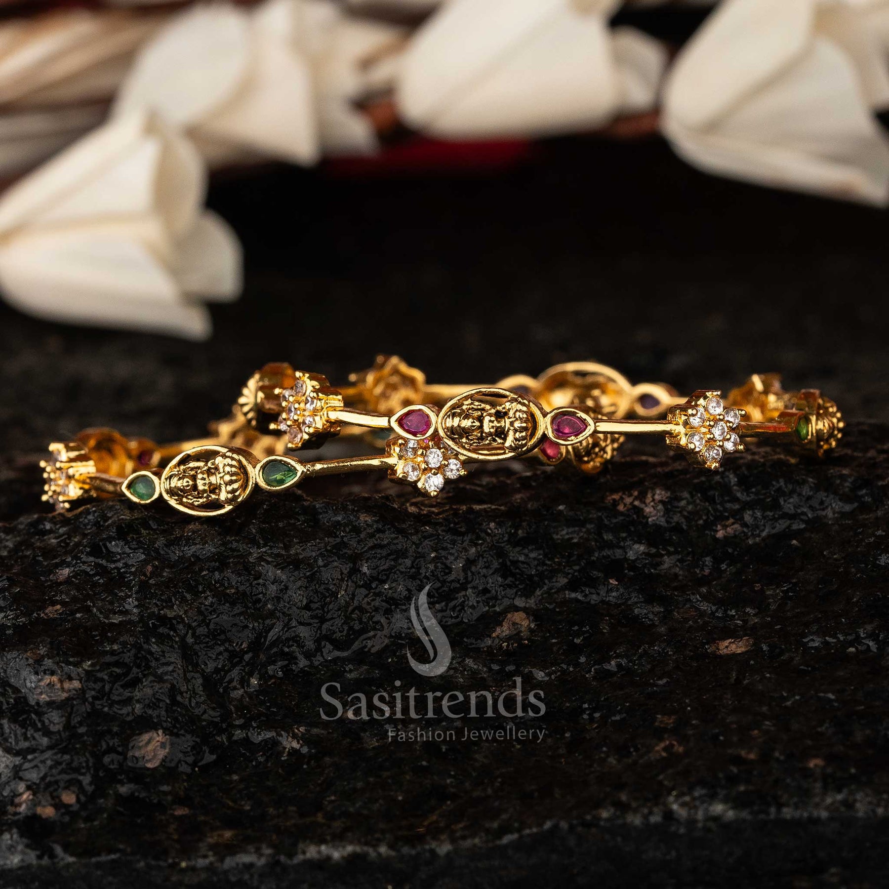 Sasitrends - Temple Elegance Matte Gold Lakshmi Oval Motif Bangles with AD Stones