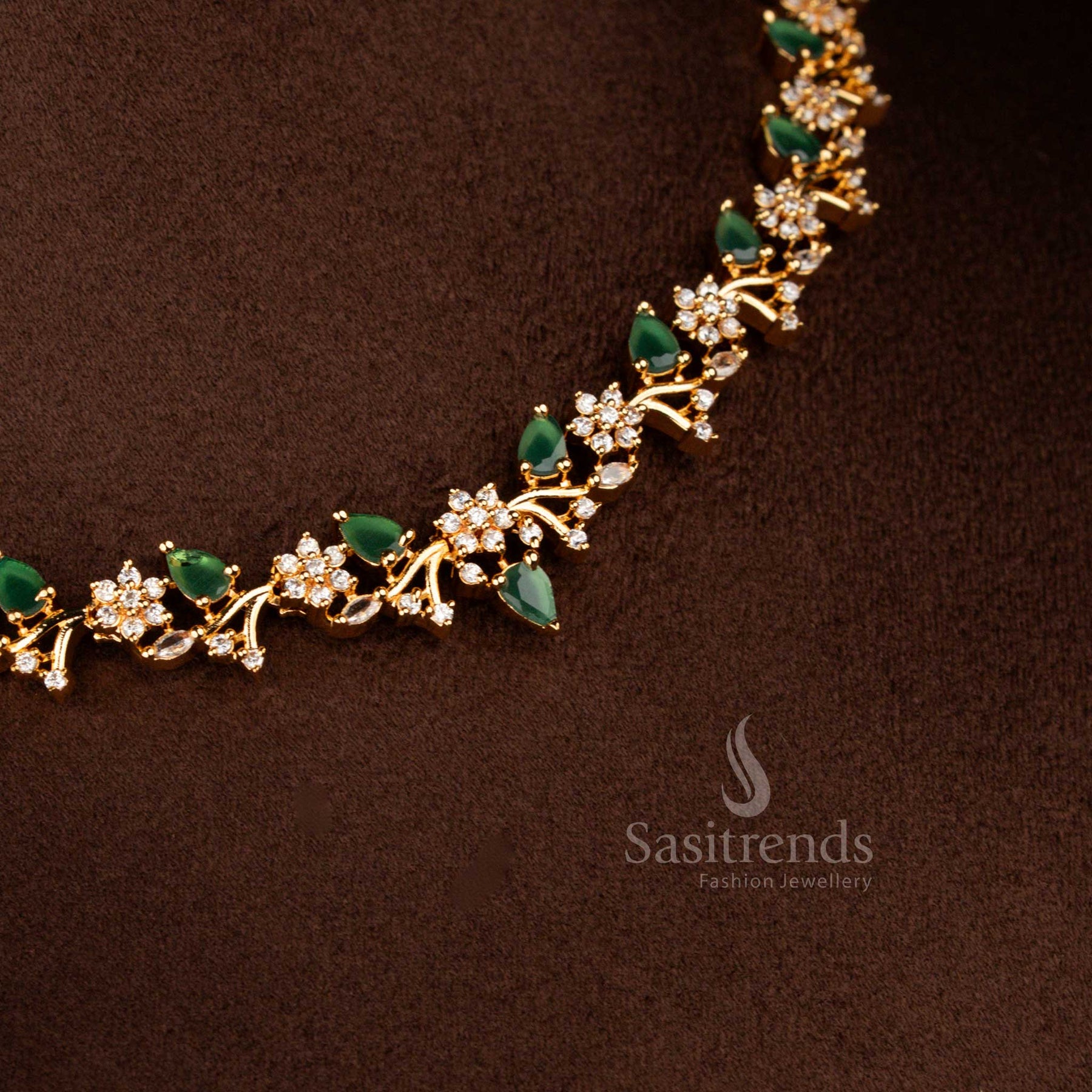 Beautiful Guaranteed Micro Gold Plated American Diamond Floral Vine Scalloped Garland Necklace Set – Bridal & Festive One Gram Jewellery