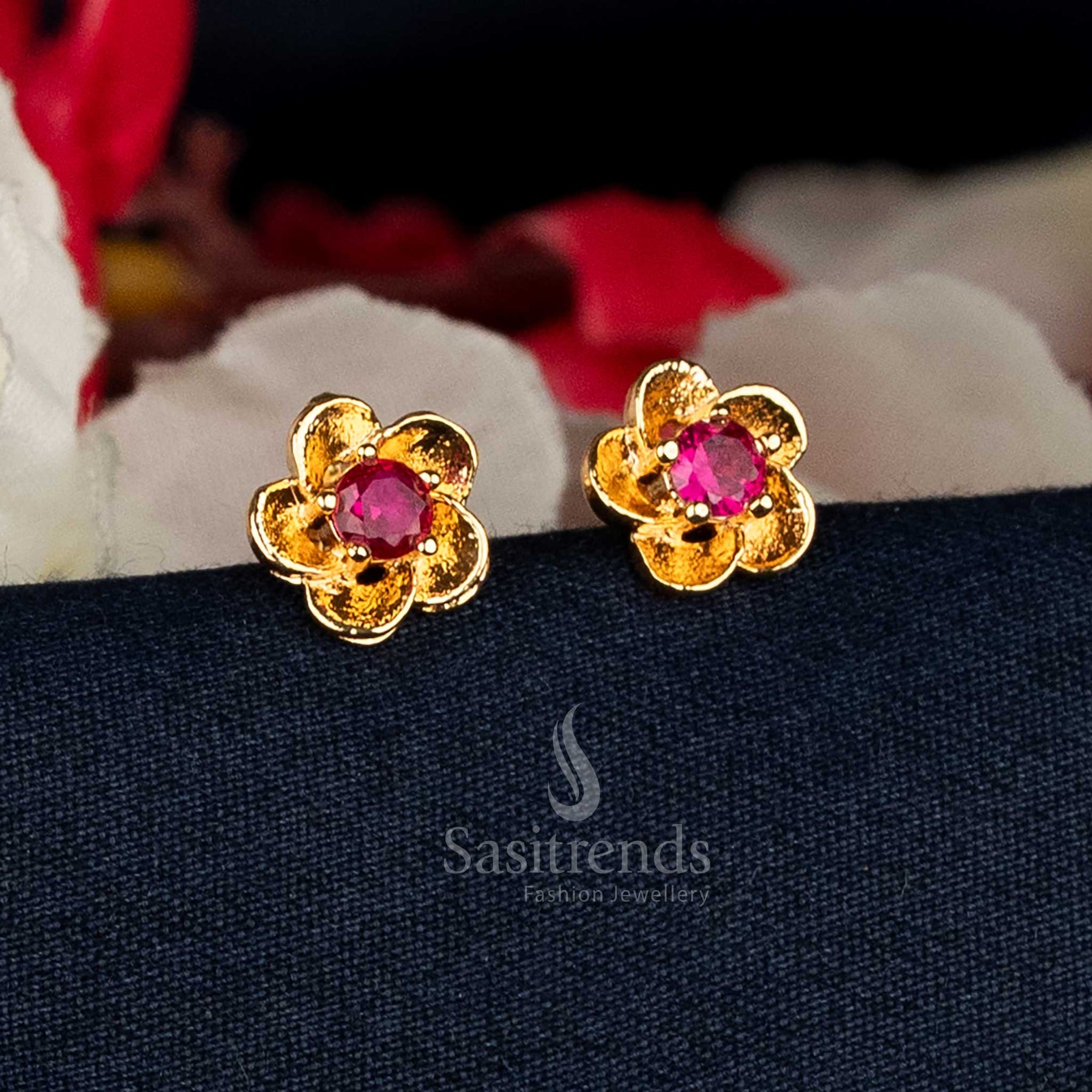 Guaranteed Impon Addigai Micro Gold Plated AD Stone Floral Solitaire Stud Earrings