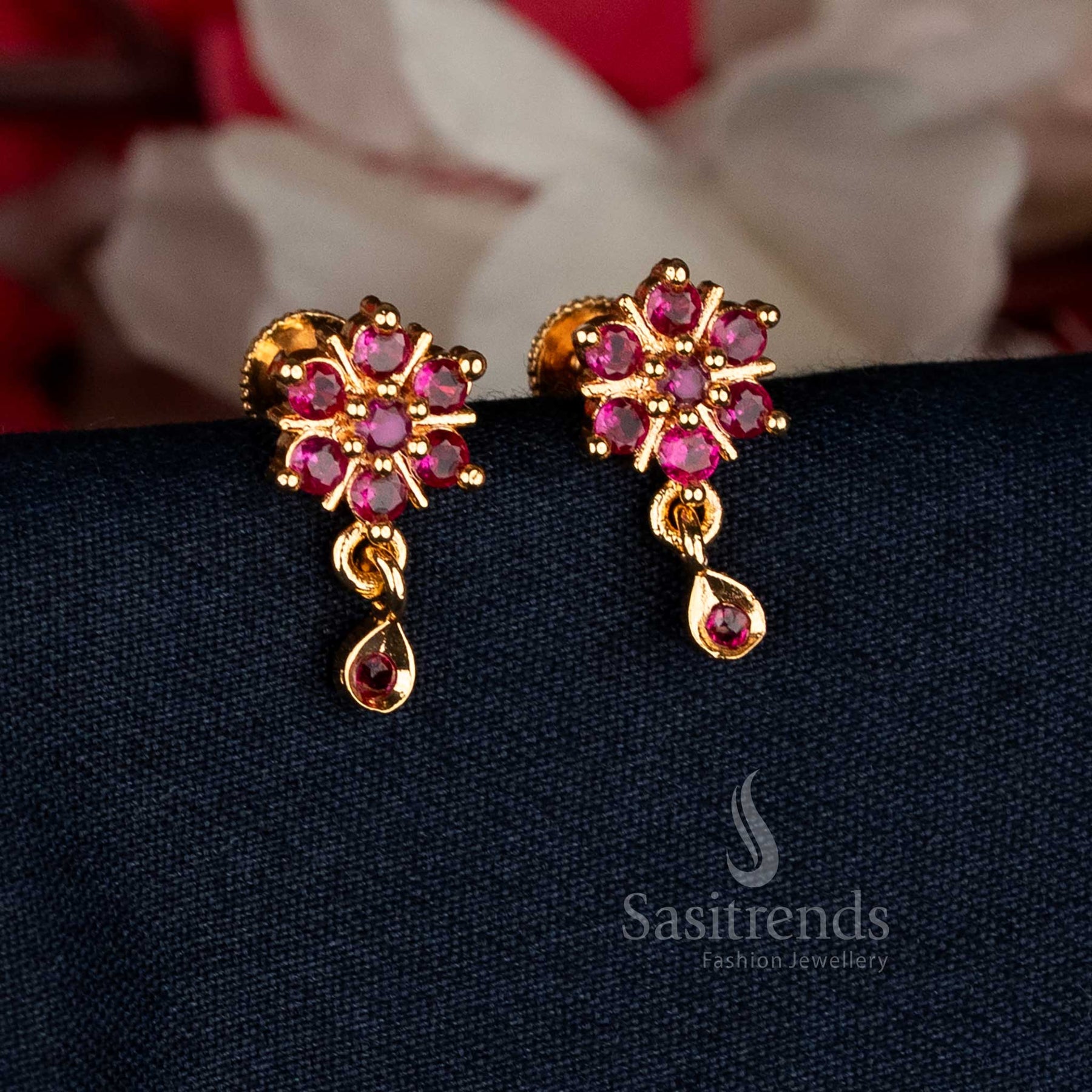 Traditional Micro Gold Plated AD Stone Floral Hanging Teardrop Stud Earrings – Guaranteed