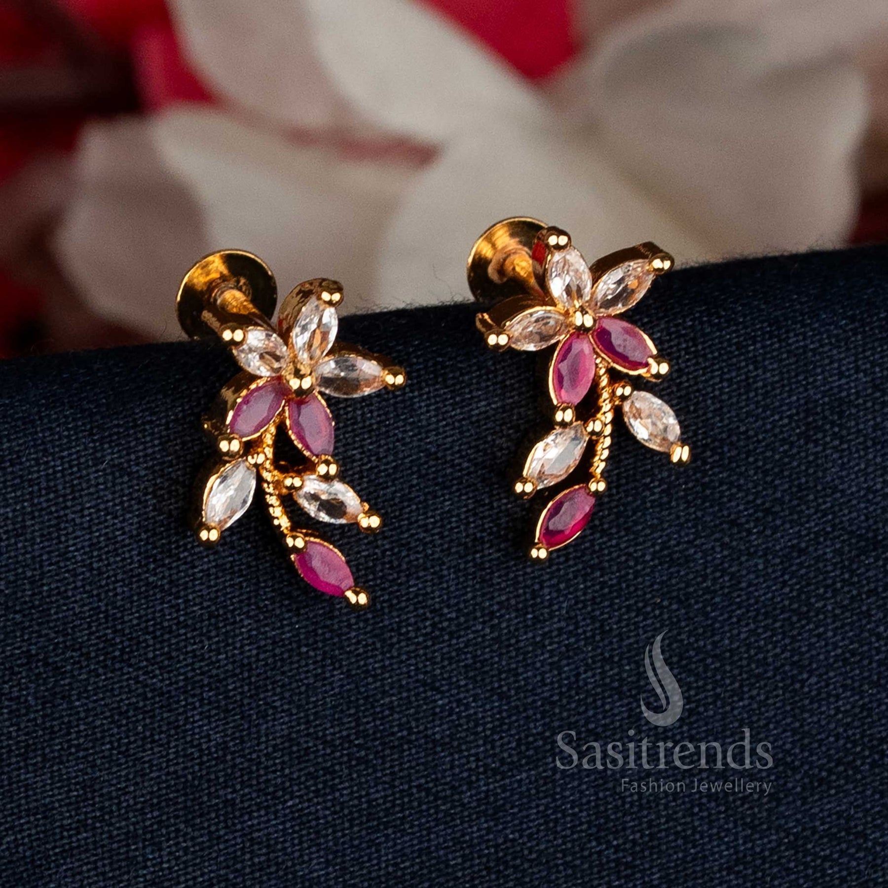 Stylish Micro Gold Plated AD Stone Marquise Floral Vine Stud Earrings for Party Wear
