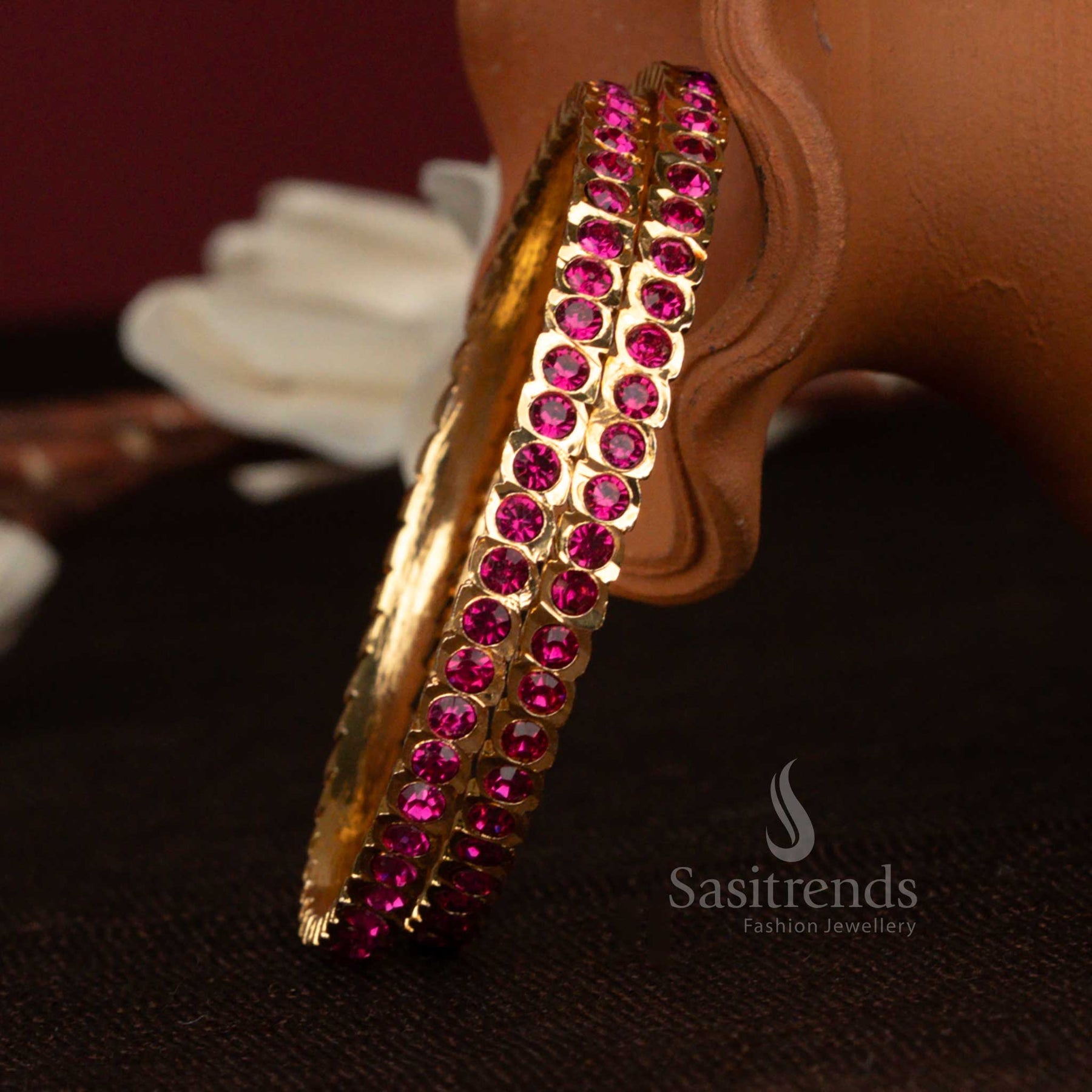 Elegant Impon Gati Addigai Micro Gold Plated Scalloped Notched Round Stone Bangles – Guaranteed