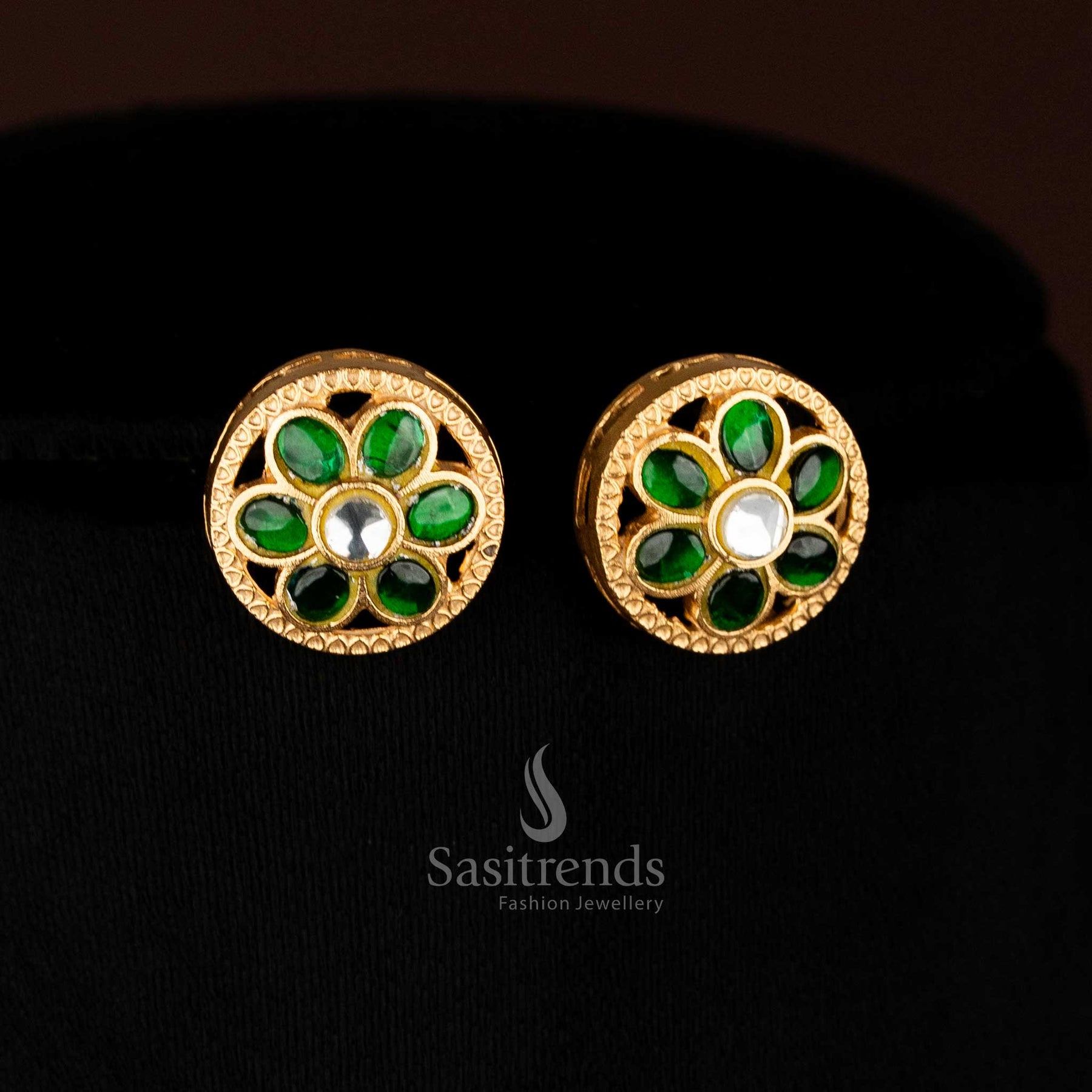 Brand: Sasitrends presents Jadau heritage jewellery with 24K Gold Plated finishing designed for temple visits, traditional celebrations, and cultural styling. This round floral necklace set showcases fine detailing, premium craftsmanship, and timeless elegance, making it a standout accessory for ethnic outfits and festive occasions.