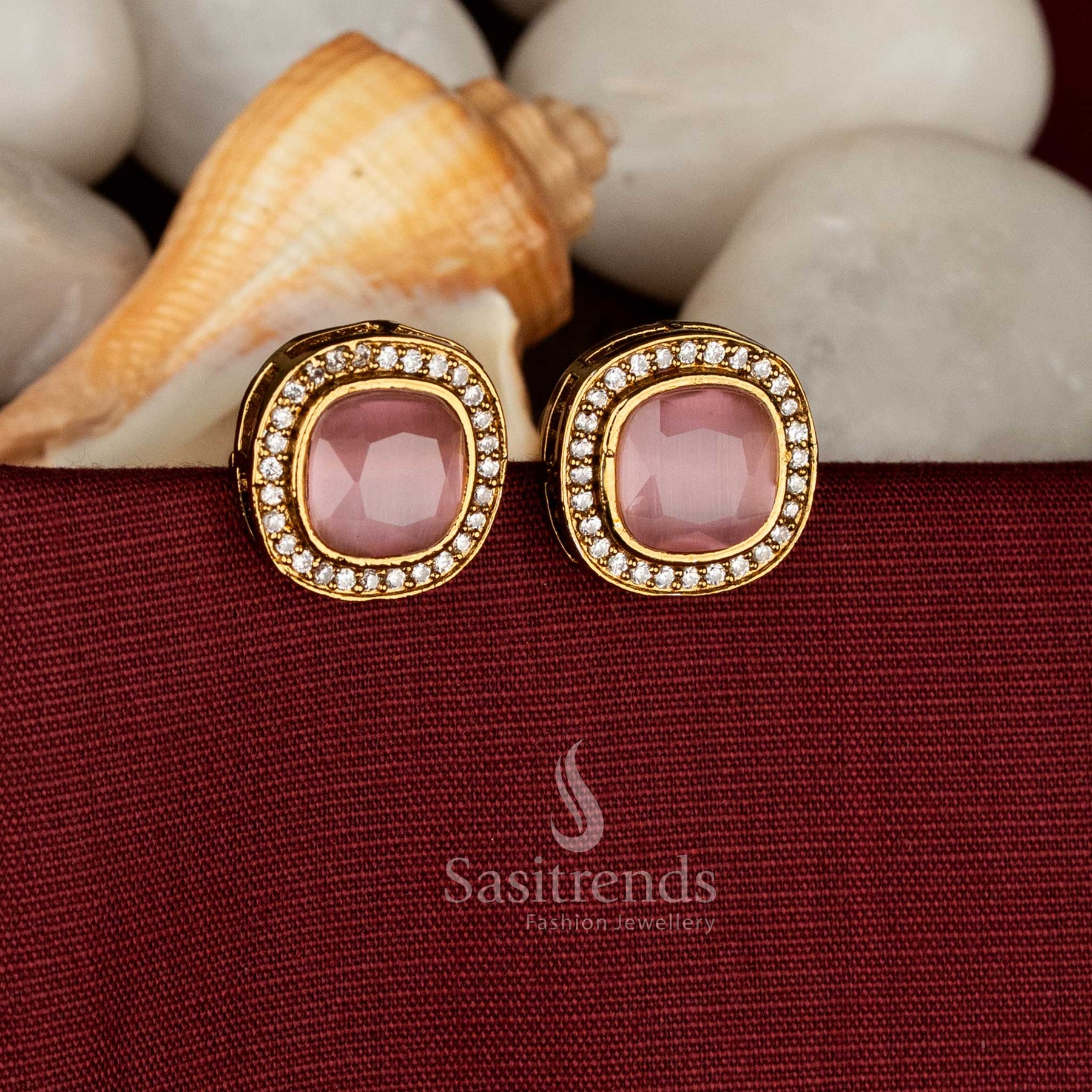 Victorian Square AD Stone Stud Earrings – Elegant Party Wear Jewellery