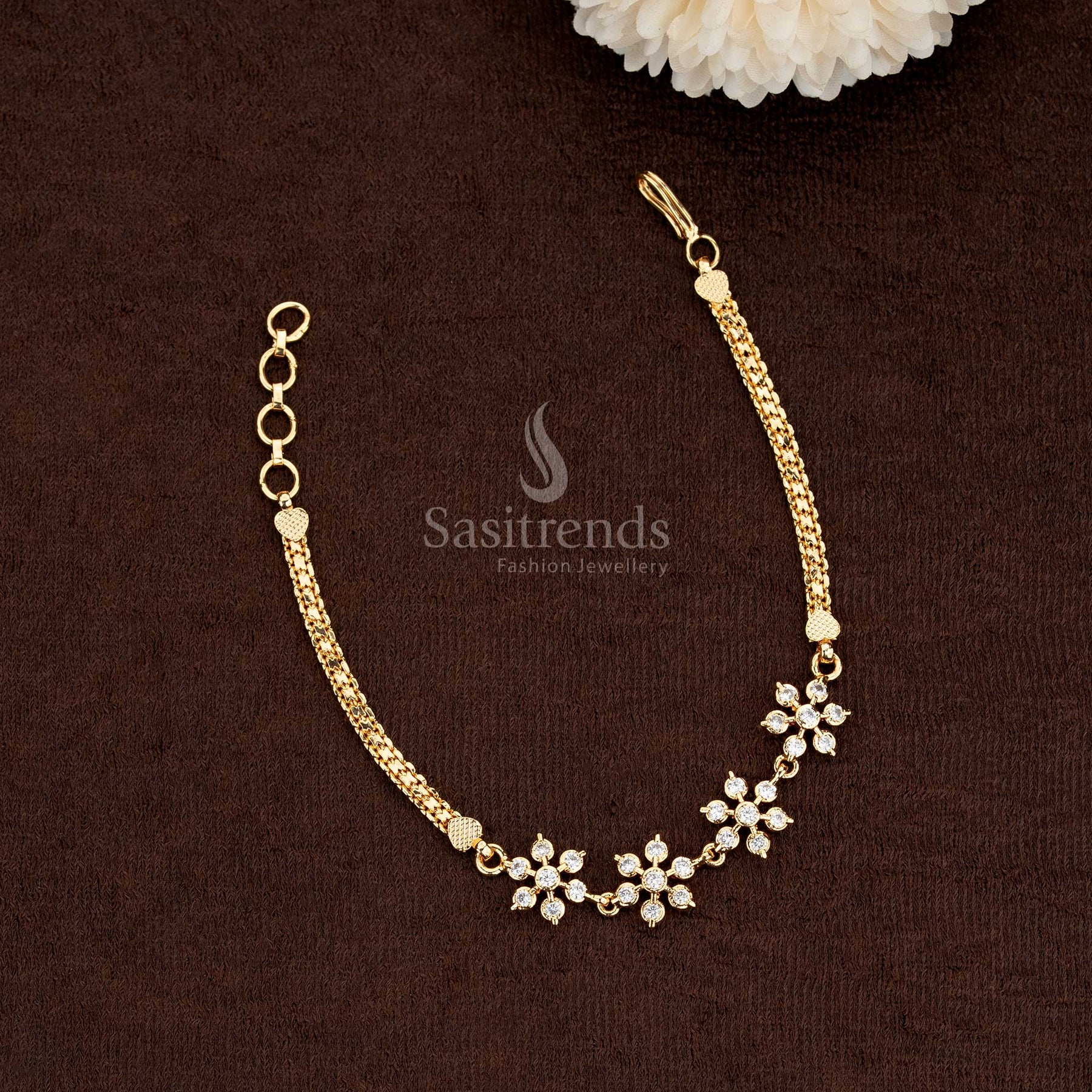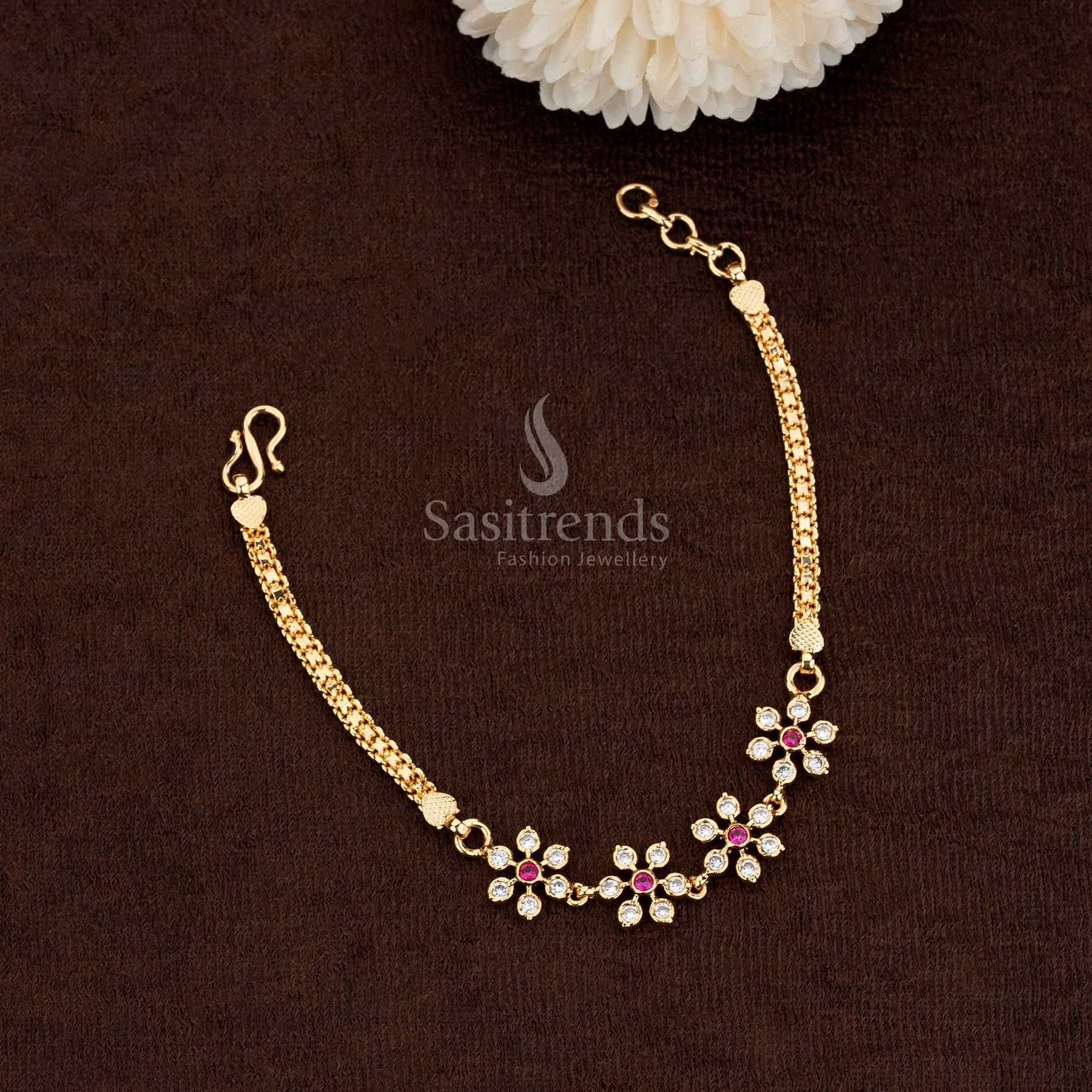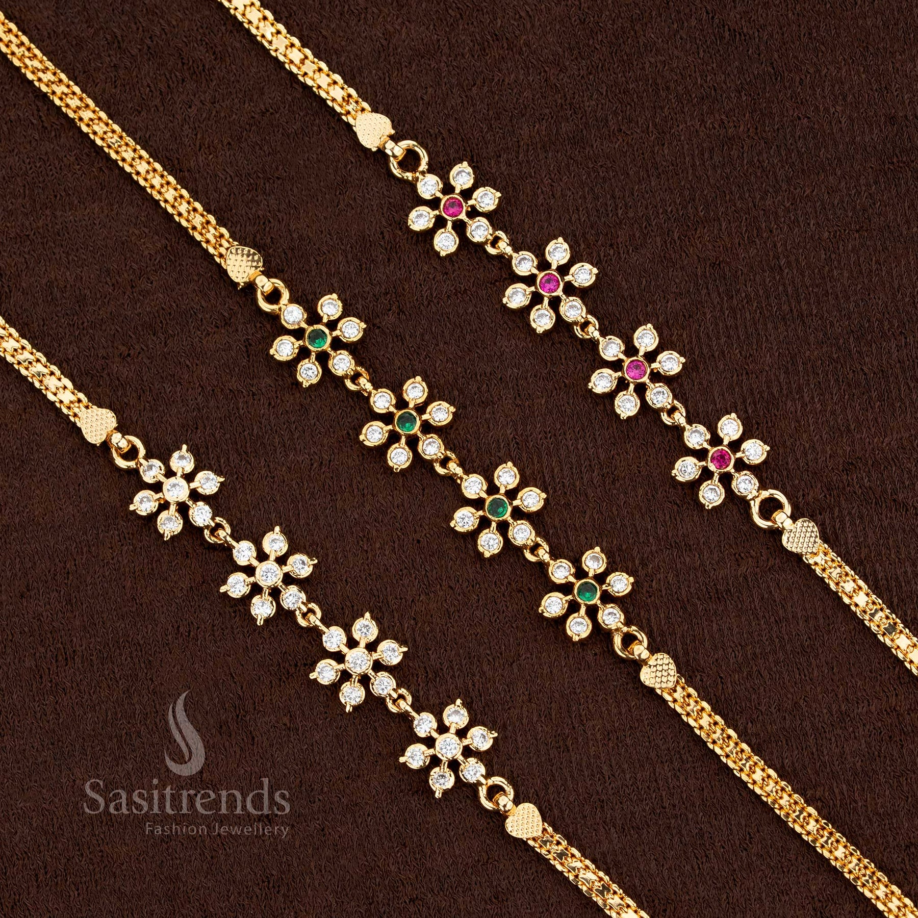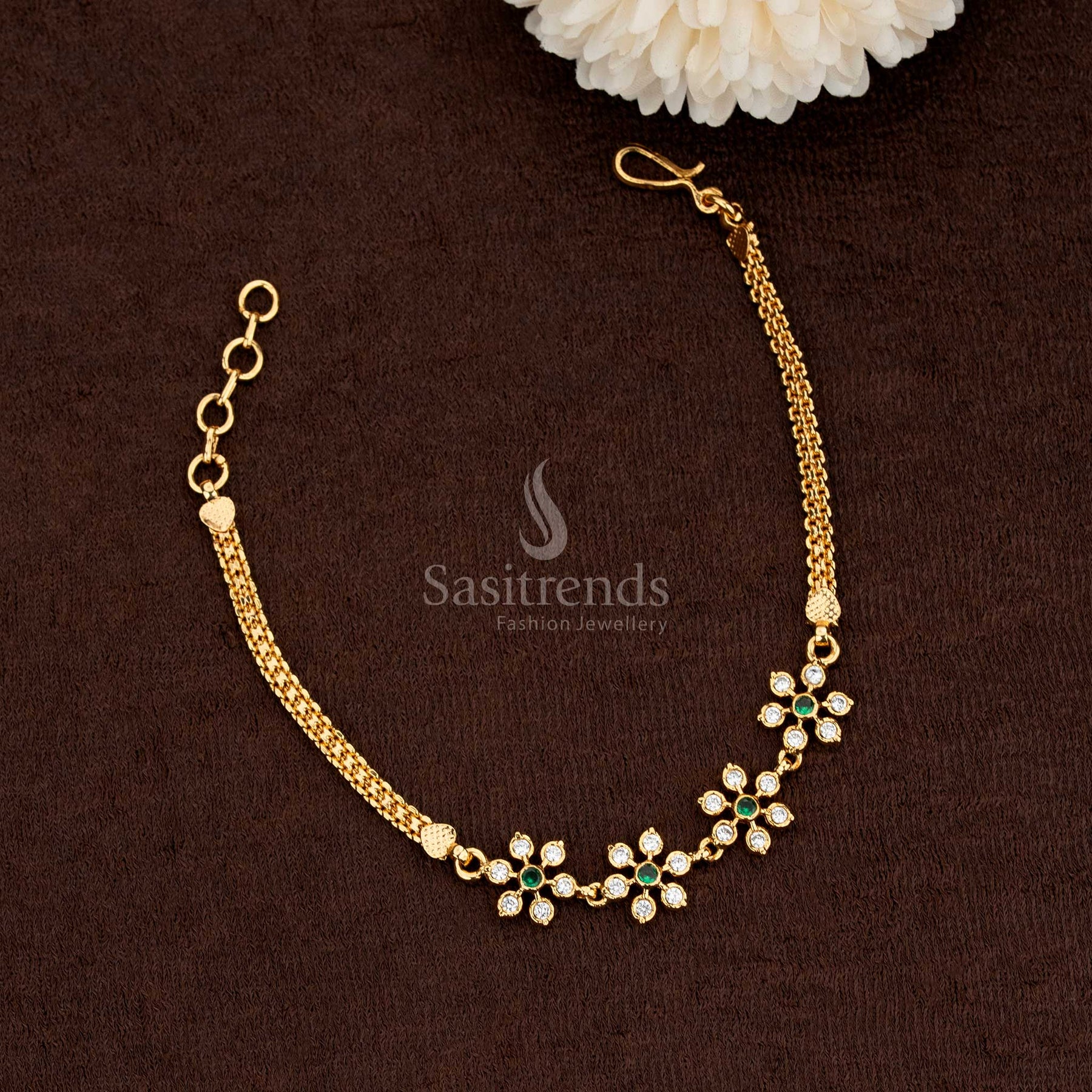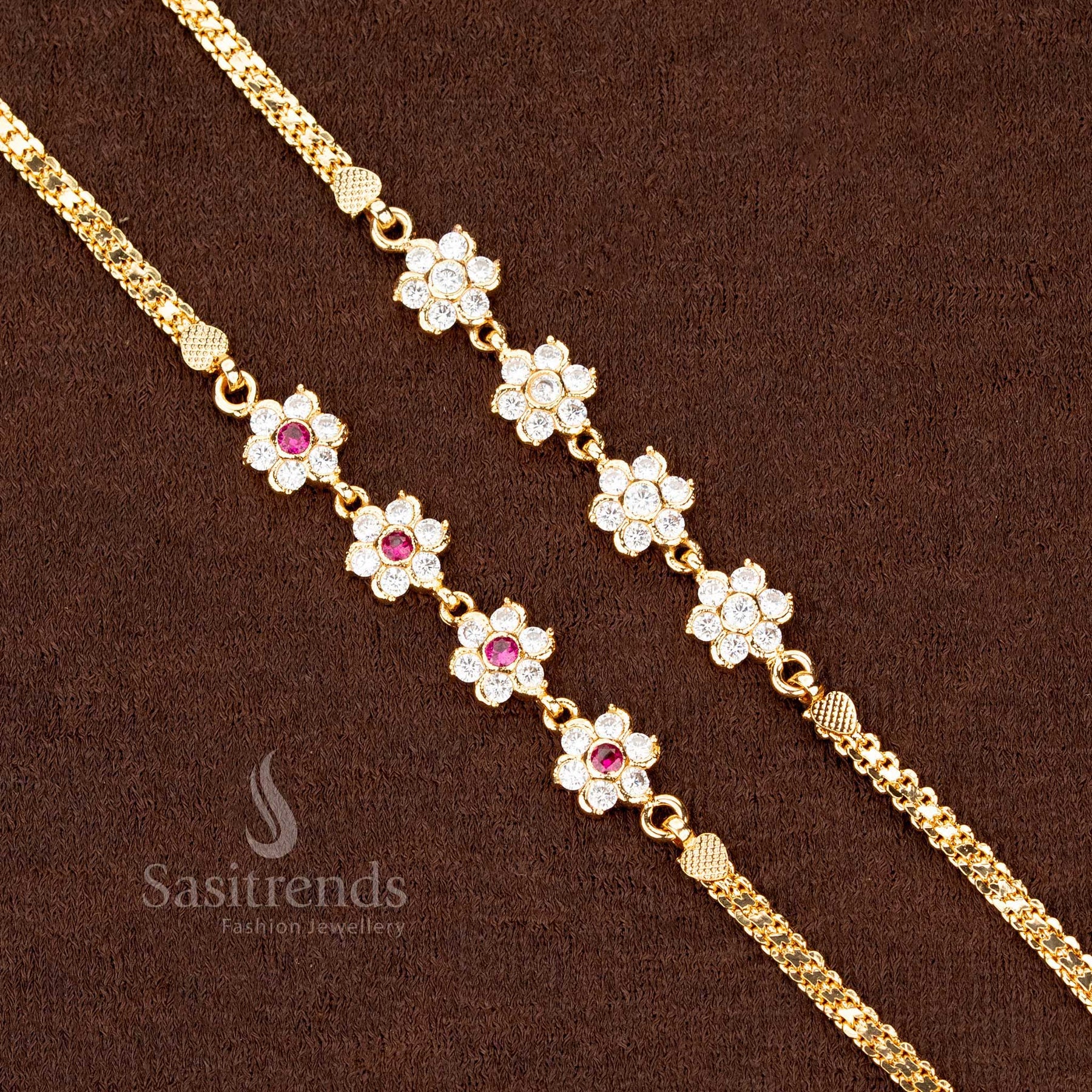Traditional Impon Addigai Micro Gold Plated Spiral Floral AD Stone Bracelet Set - Sasitrends