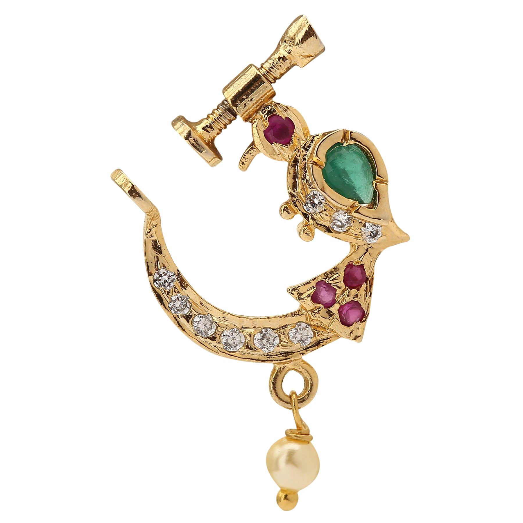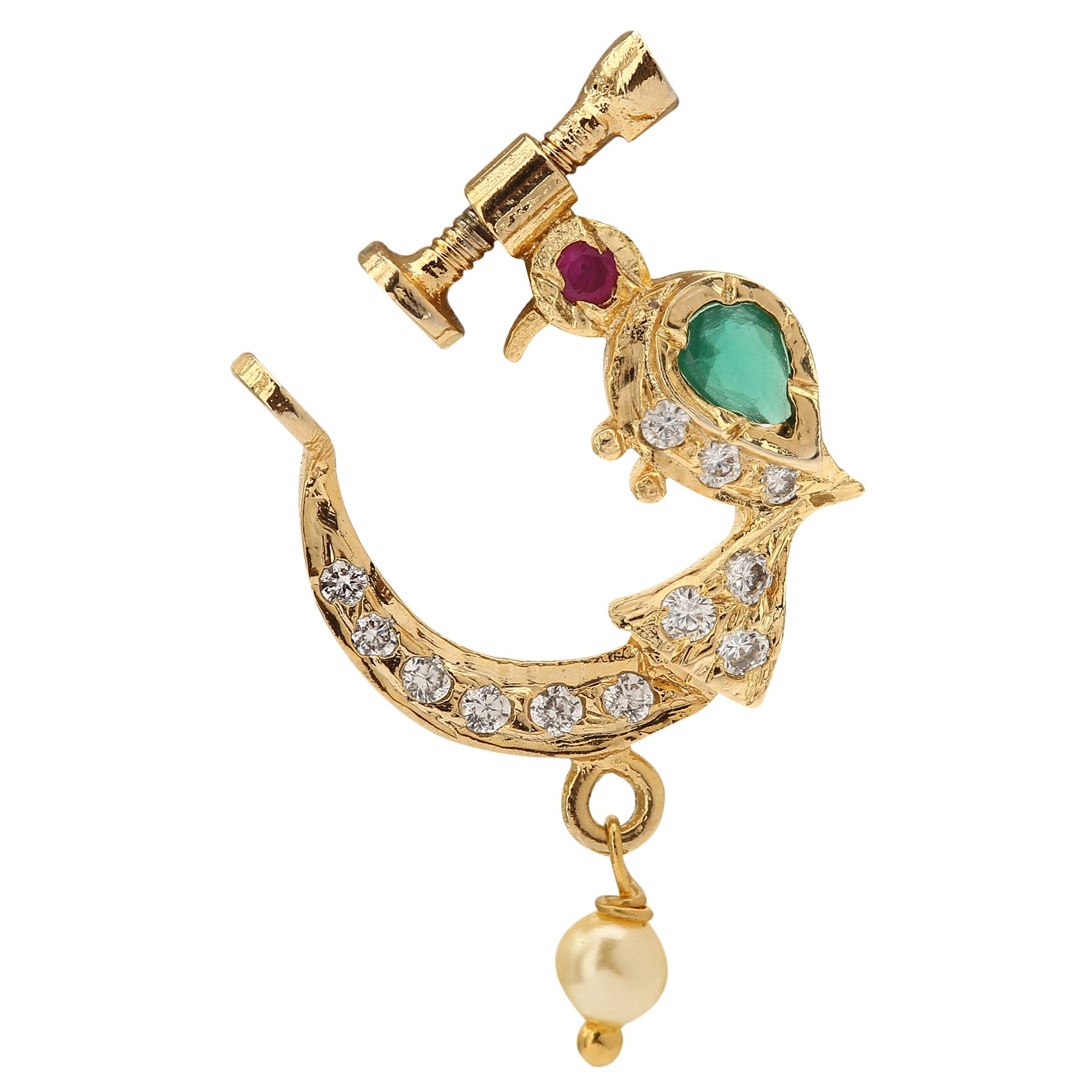 Peacock designer nose Pin will make you feel royal. The material used is skin-friendly and anti-allergic. Easy to wear, adjustable, light in weight & gives you a rich look. It is perfect for daily wear, marriage, engagement ceremonies, birthdays, parties, and other special occasions. Sasitrends is committed to providing the best jewellery and best customer services to our customers. This piece of jewellery comes with the Sasitrends assurance of quality and durability. Care instructions- First wear your makeup, perfume, and then wear your jewelry. This will keep your jewelry shining for years. Please store it in an air-tight container.