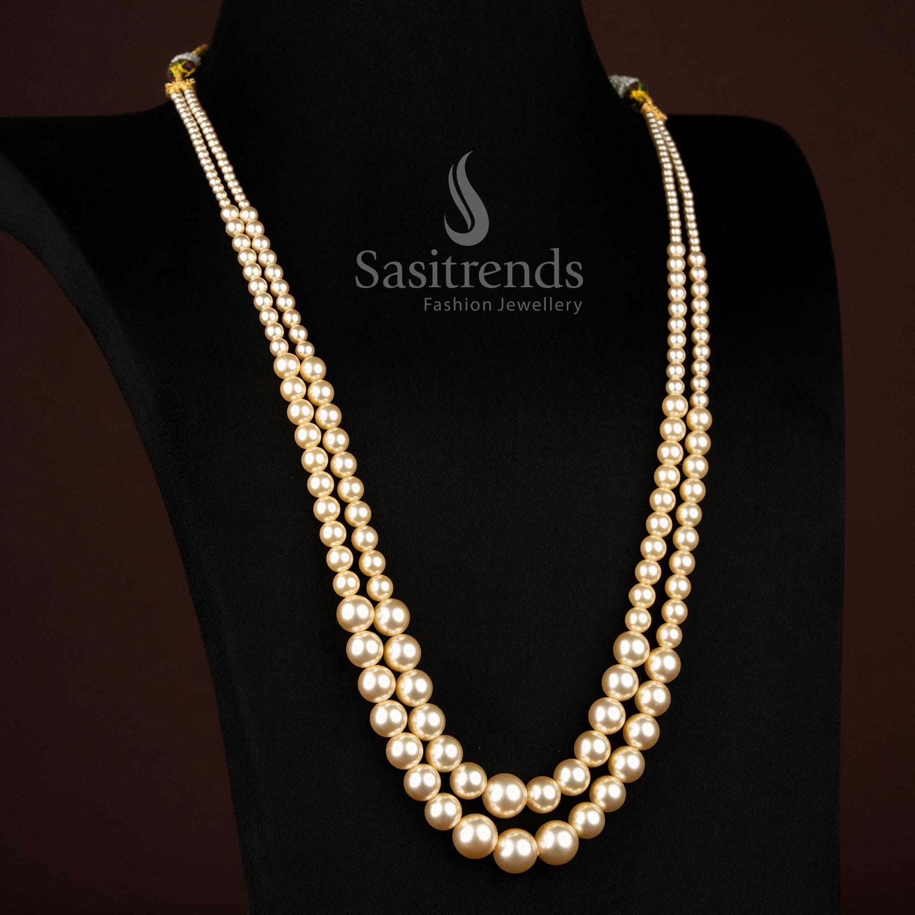 Delightful Traditional Wear 24K Micro Gold Plated Double Layer Pearl Mala Long Necklace Jewellery | Guaranteed