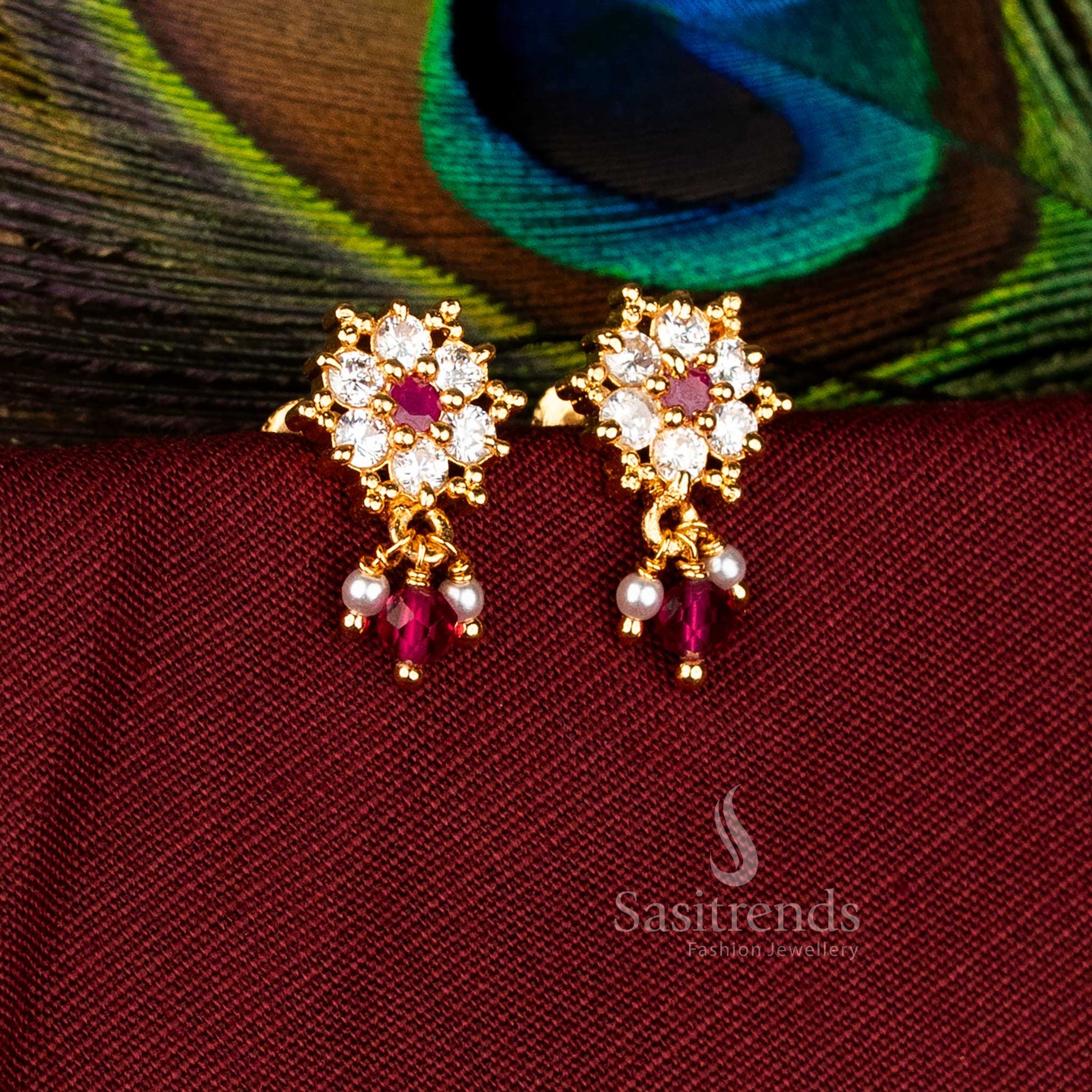 Brand: Sasitrends blends tradition and opulence with Guaranteed Micro Gold Plated jewellery. Each piece highlights exquisite craftsmanship, intricate detailing, and heritage-inspired designs. Sasitrends offers timeless, premium-quality earrings and accessories that radiate elegance, perfect for weddings, festivals, and cultural occasions, providing the allure of real gold with lasting beauty.