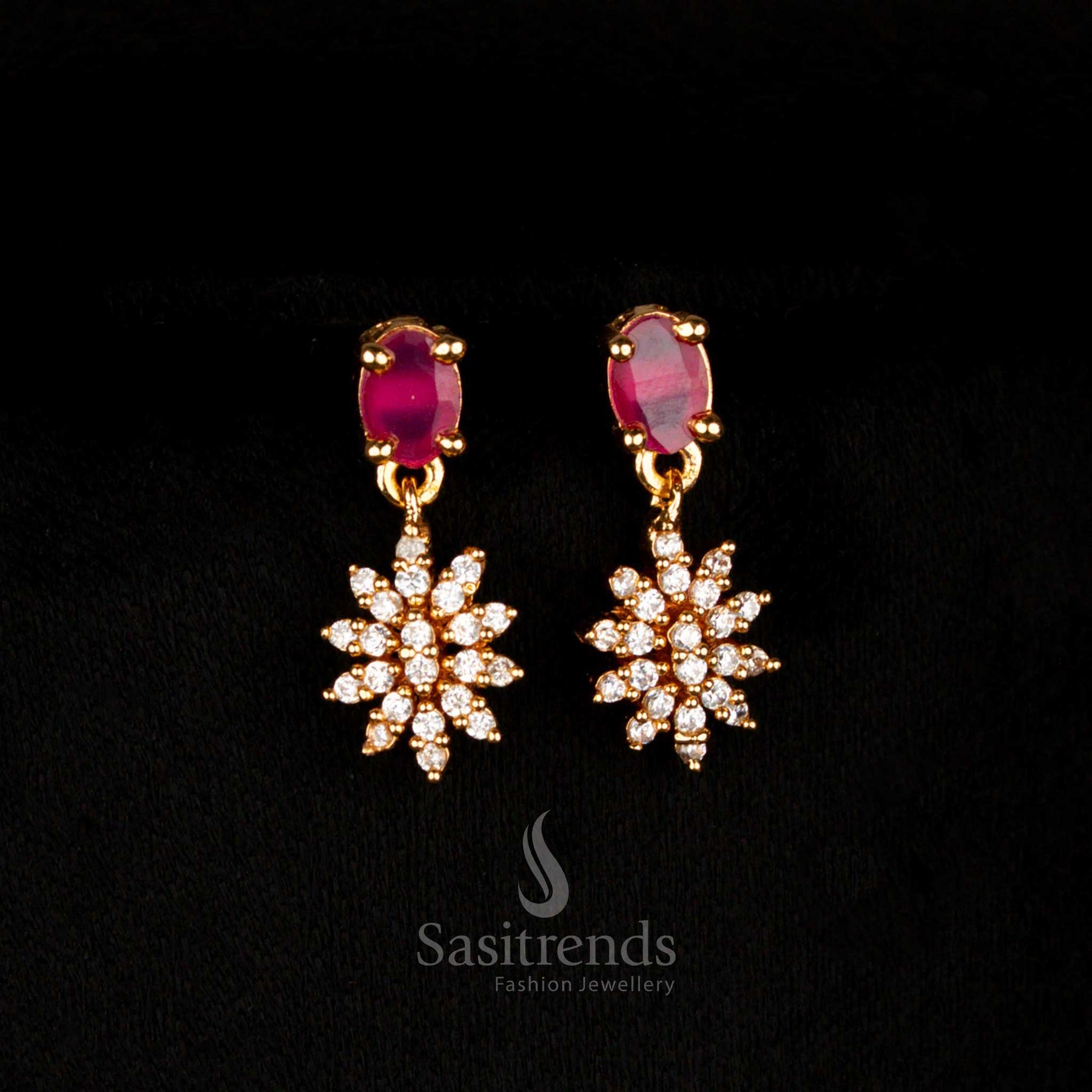 Micro Gold Plated American Diamond Floral Necklace Set with Oval Stones | Traditional Design