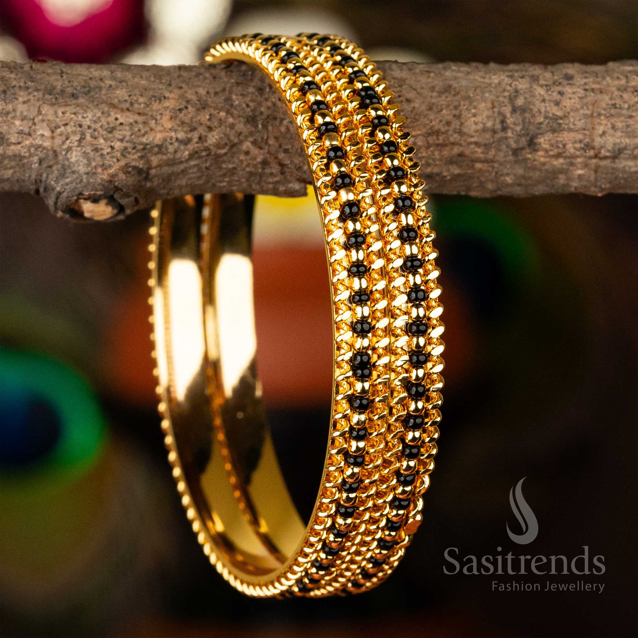 Traditional Elegance: Stunning Traditional Micro Gold Plated Black Bead Bangles - Sasitrends
