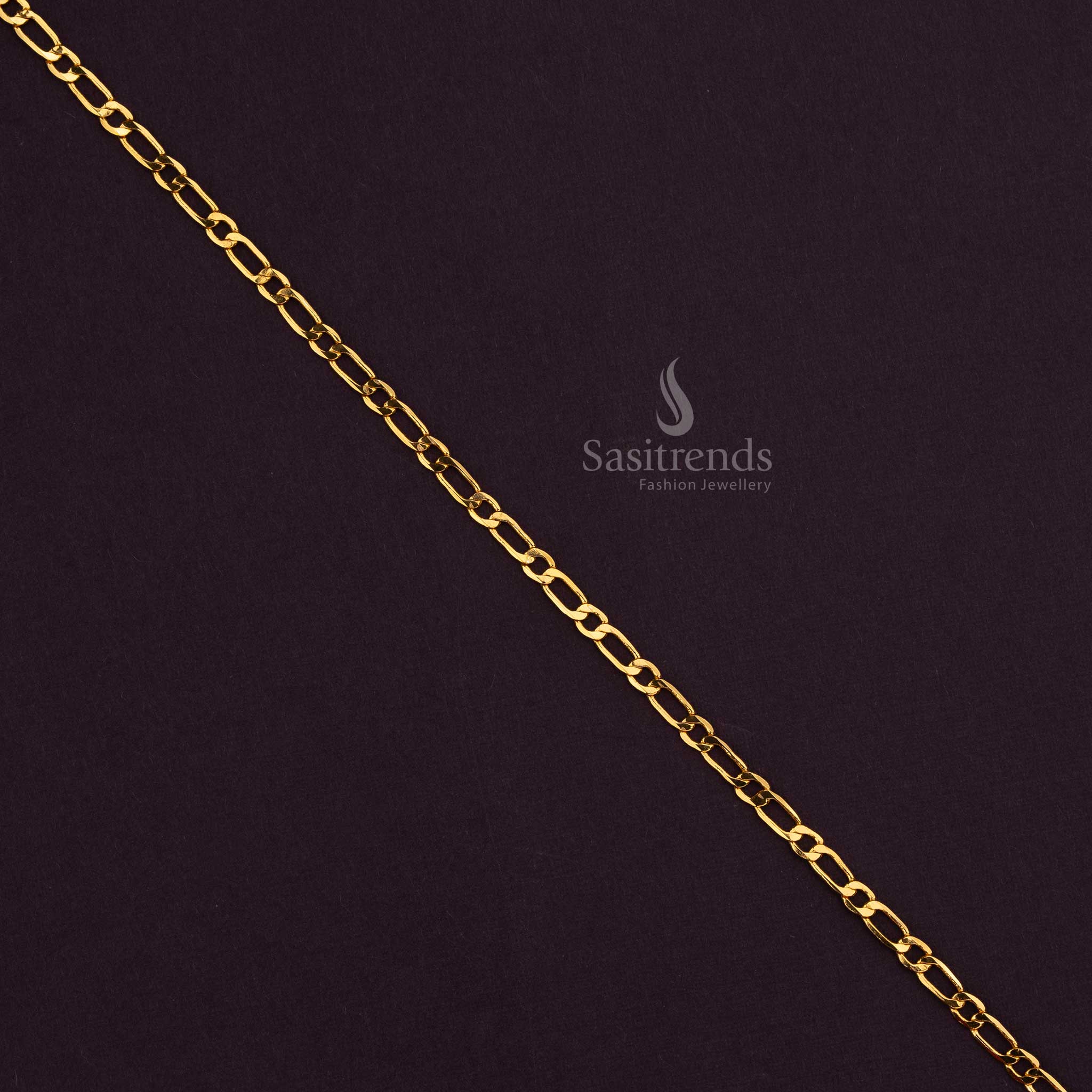 - Brand: Sasitrends is known for its high-quality traditional jewellery, meticulously designed using 24-carat pure gold plating for a look like real gold finish. Our expertly crafted Figaro link chains are guaranteed to add a timeless touch to festive and temple wear collections.