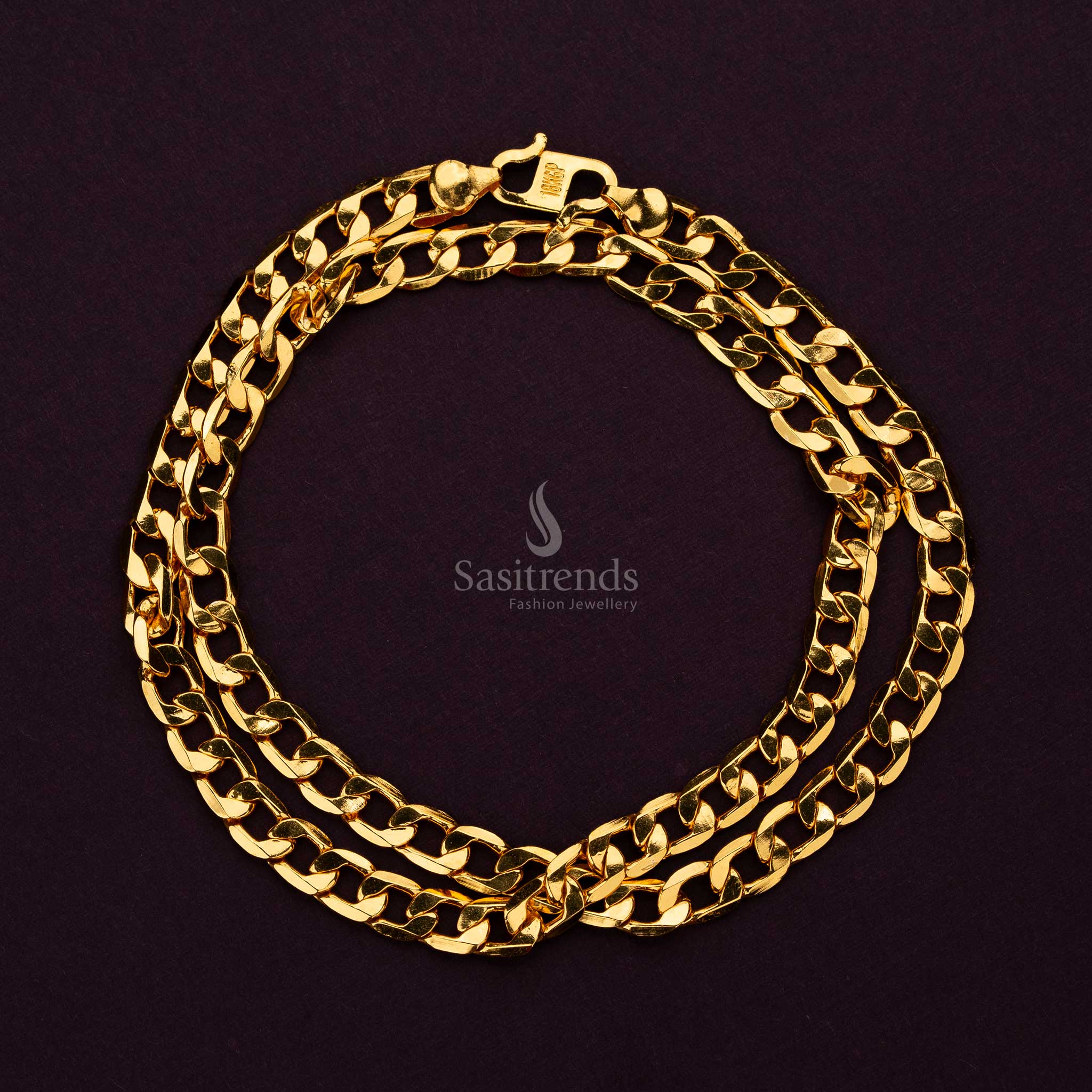 Each chain features a distinct structural pattern with interwoven spiral links, ensuring durability, shine, and a smooth finish. These gold-plated spiral chains are a must-have for men’s jewellery collections, offering both sophistication and traditional elegance.
