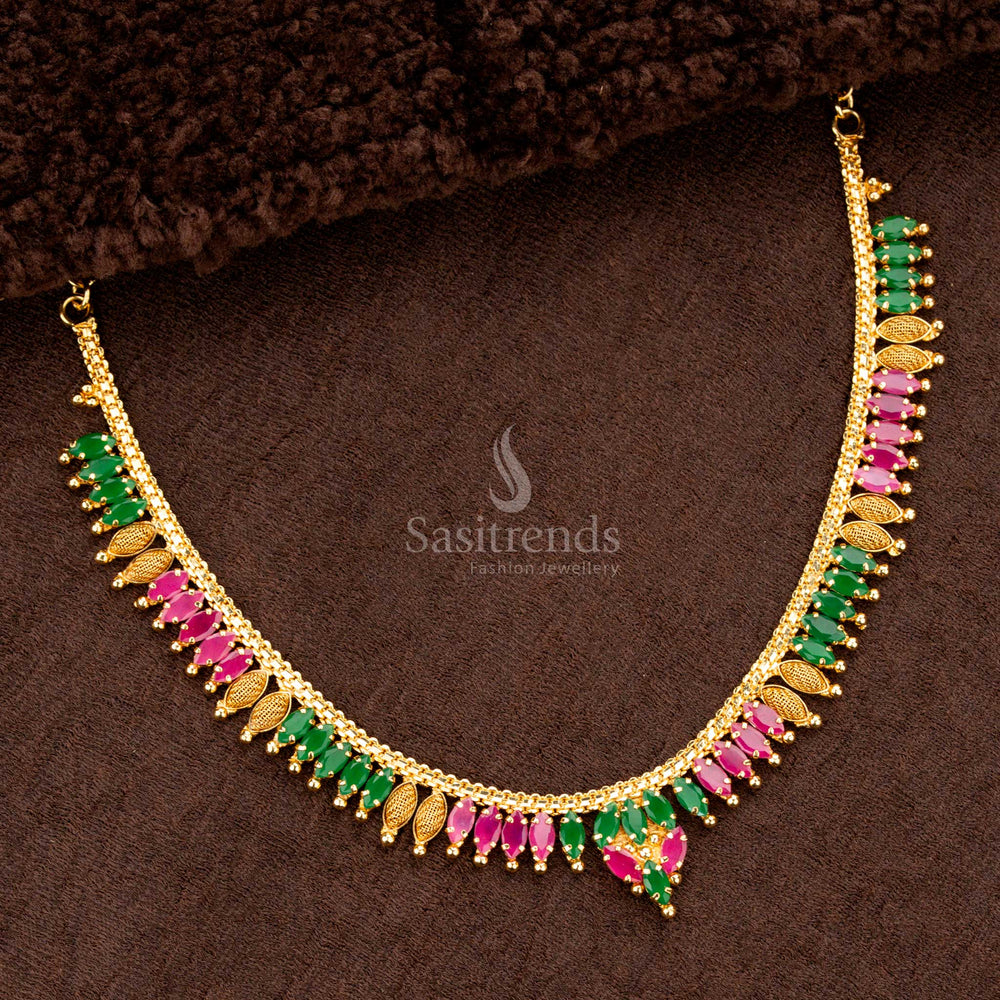 Exquisite One Gram Micro Gold Plated Necklace with Ruby AD Stones - Sasitrends