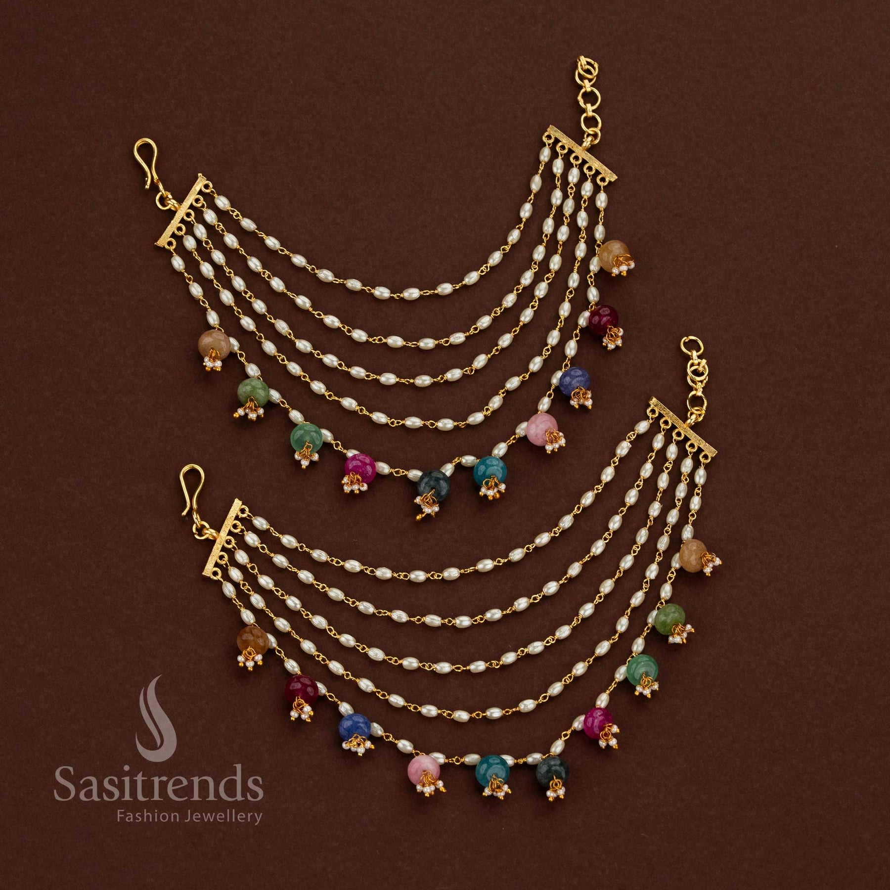 Pearl ball drop embellished 5 layer gold plated matil perfect for traditional functions, festive charm and bridal styling – Sasitrends