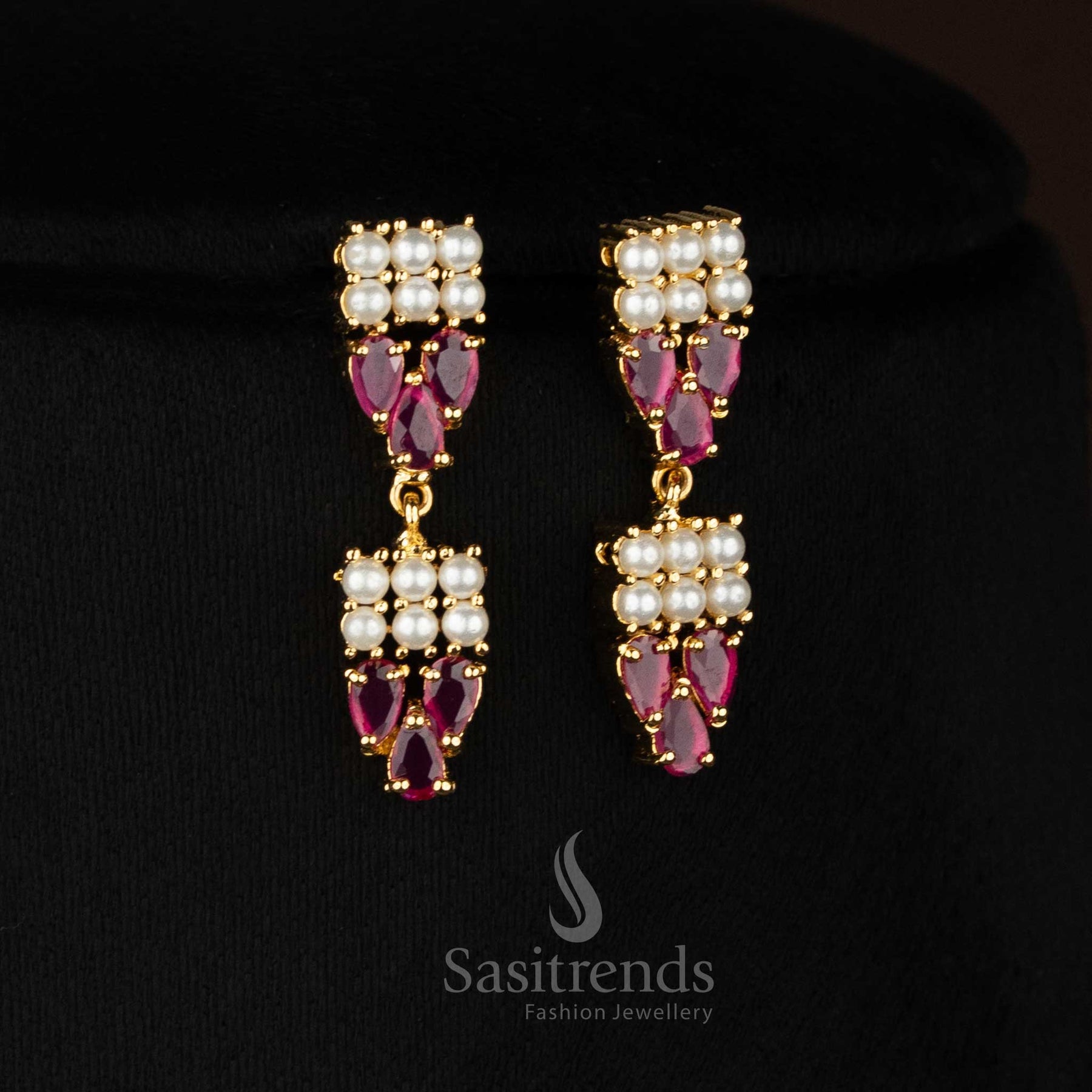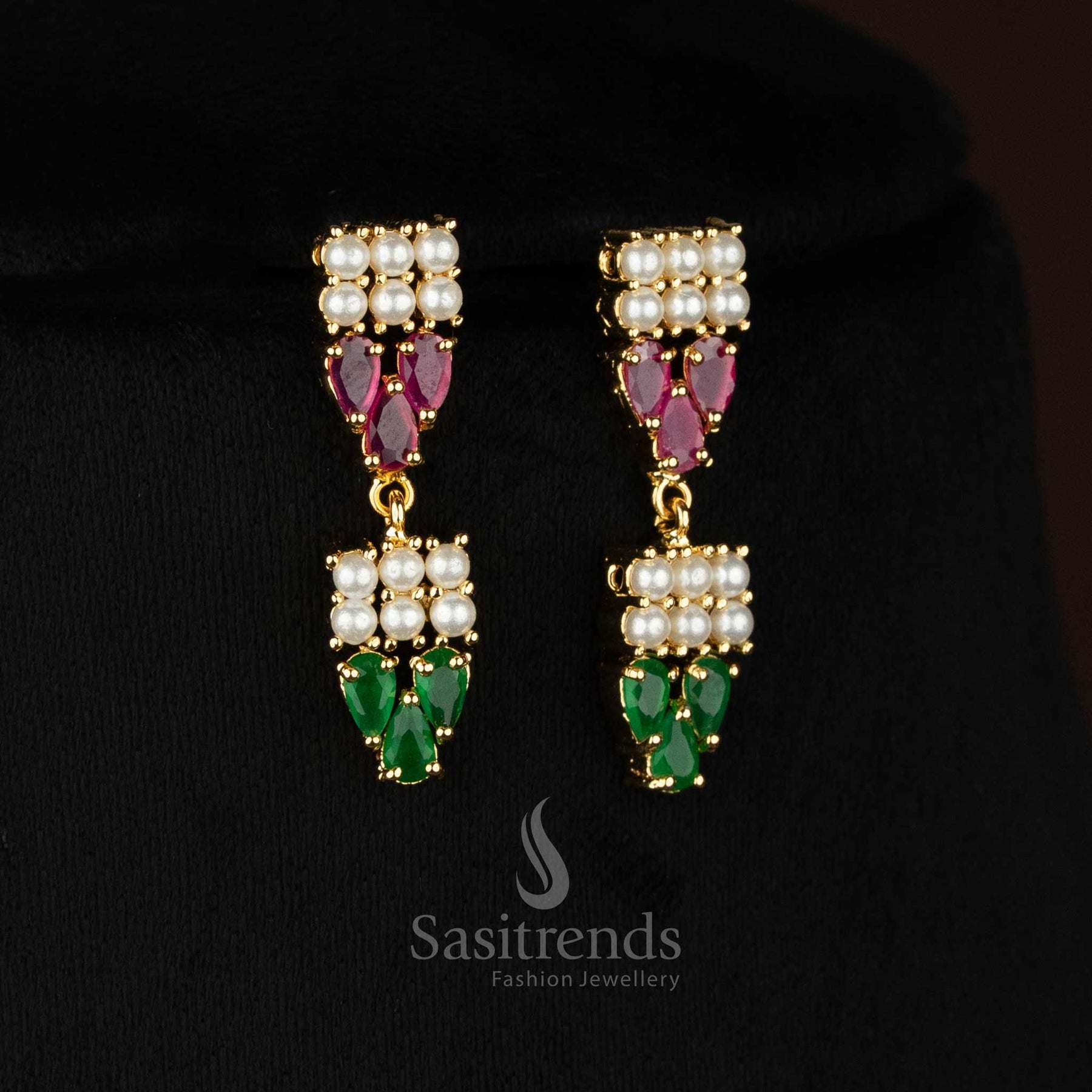 Brand: Modern-luxe collections from Sasitrends focus on occasion-ready elegance and refined detailing. Each jewellery piece is crafted with accurate American Diamond placement, pearl highlights, and smooth micro gold plated finishing. The brand curates statement designs that elevate party wear, evening looks, and celebration styling with polished sophistication.