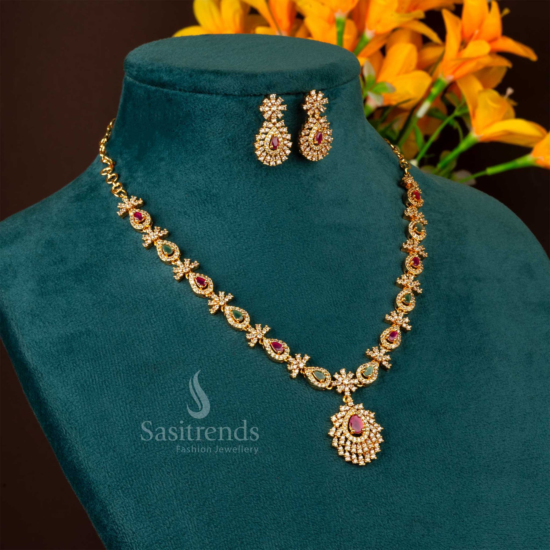 Regal Elegance American Diamond Stone Necklace Jewellery Set with Micro Gold Plating - Sasitrends