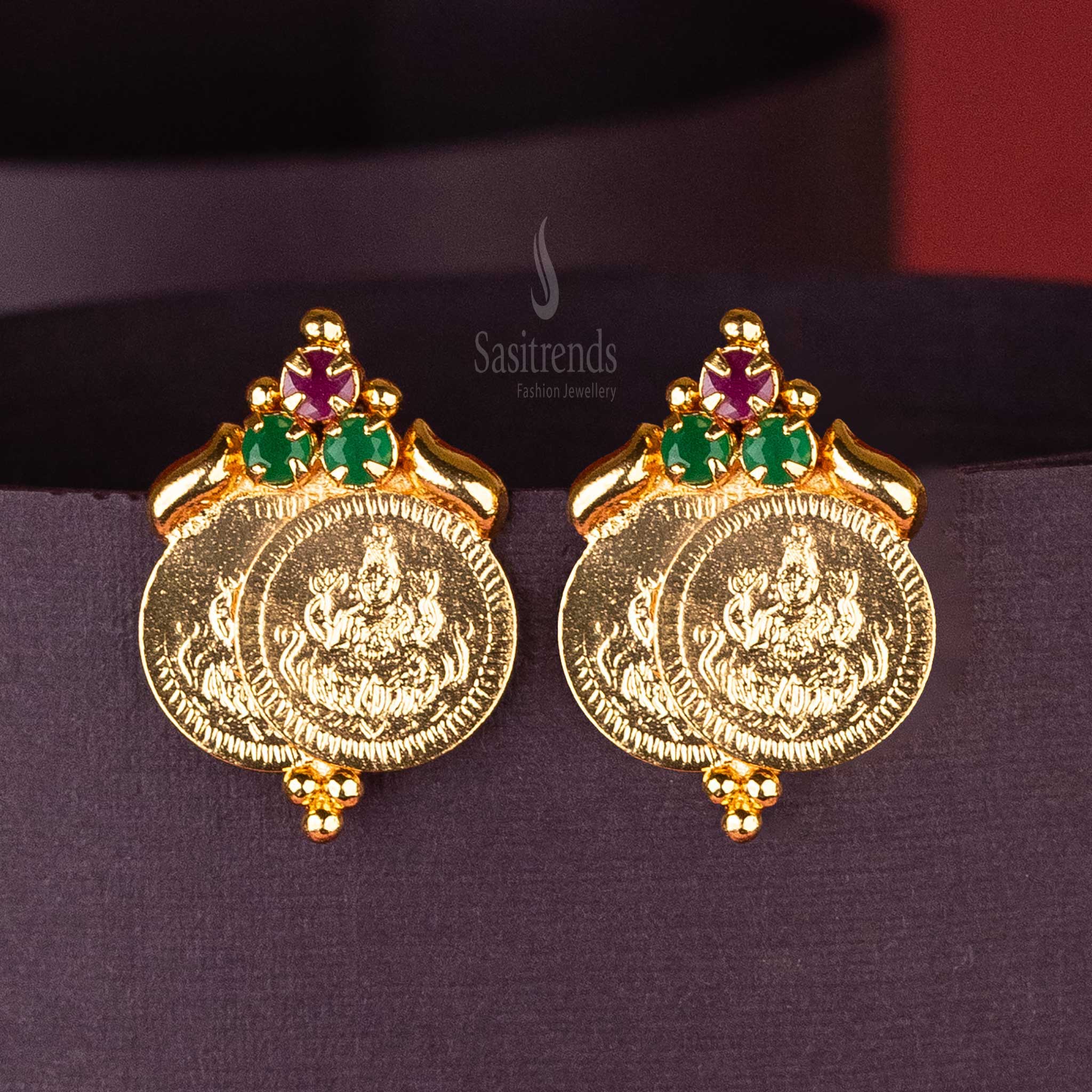 Double Lakshmi Coin Kerala Style Earrings with AD Stones - 24K Micro Gold Plated | Sasitrends