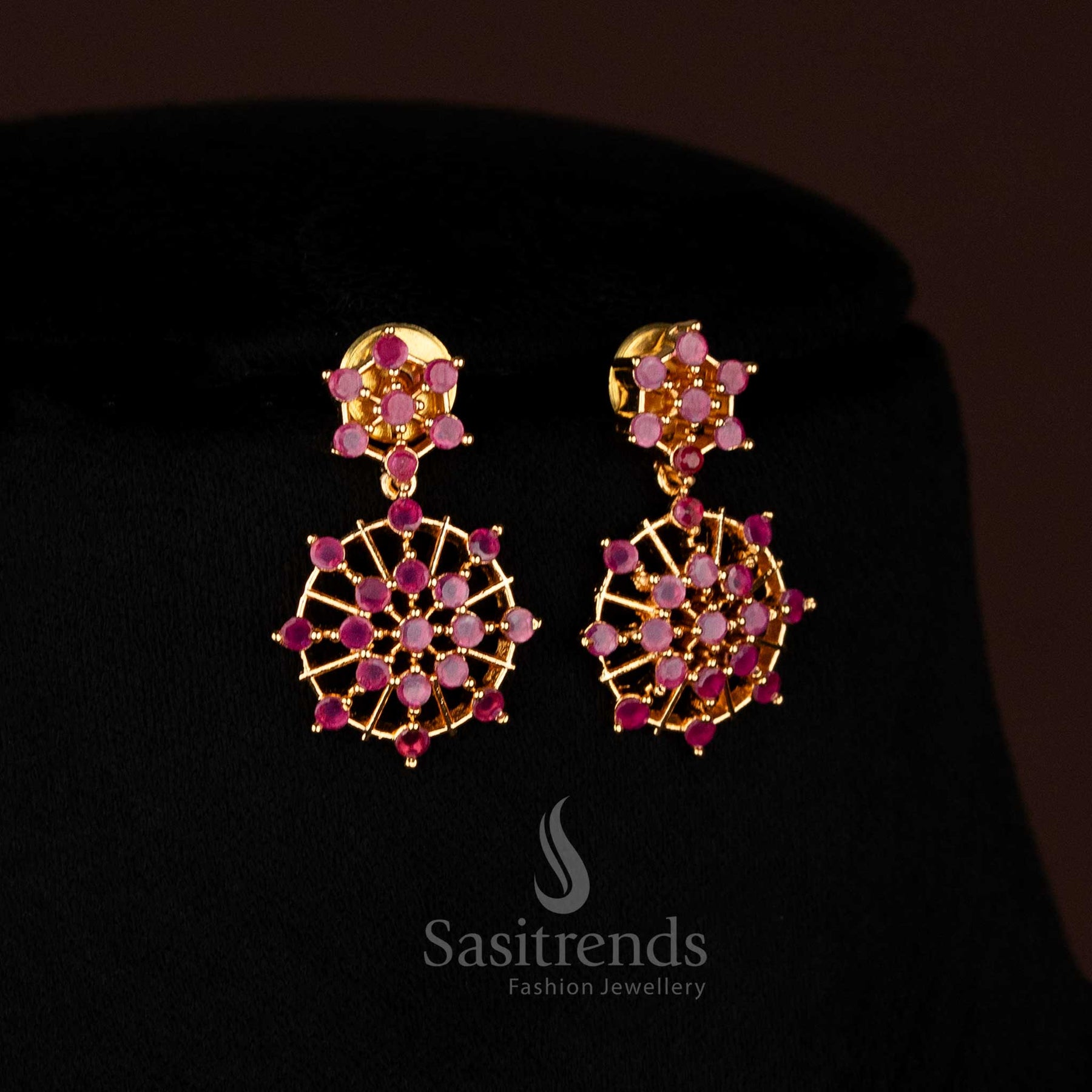 Elegant White-Ruby Micro Gold Plated Earrings Featuring AD Stone Starburst Floral Design – Sasitrends