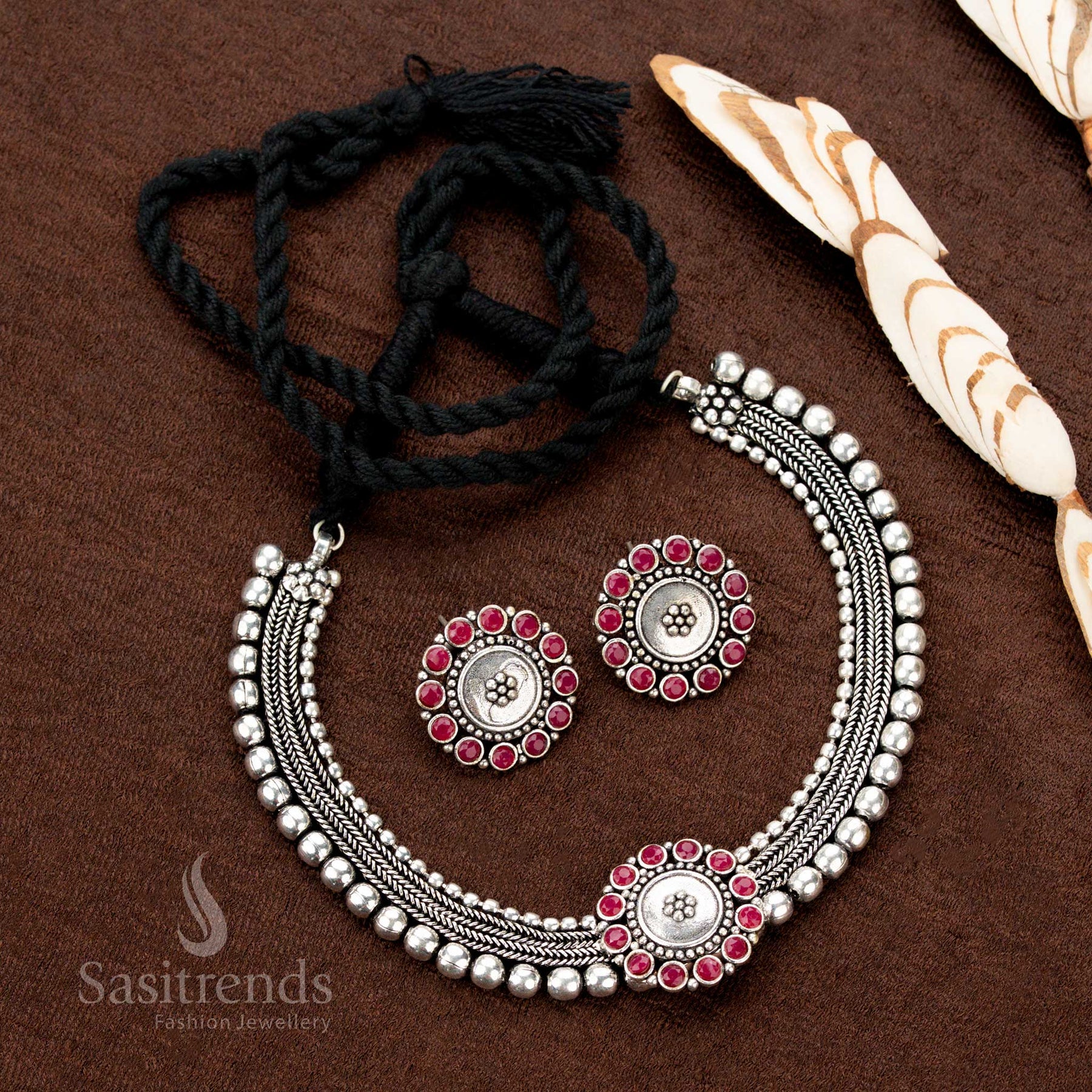 Oxidised Ethnic wear Kolapuri ruby choker necklace jewellery set, Navarathri wear - Sasitrends
